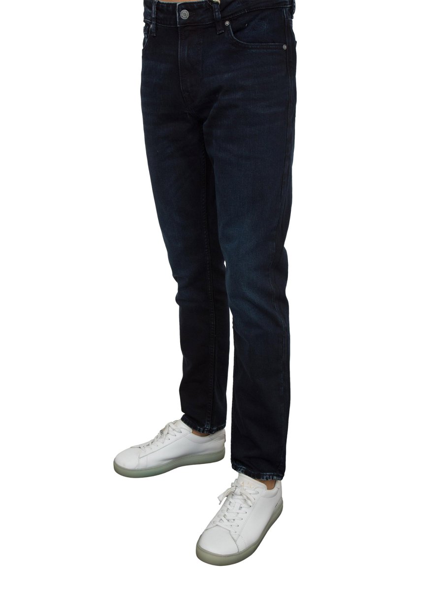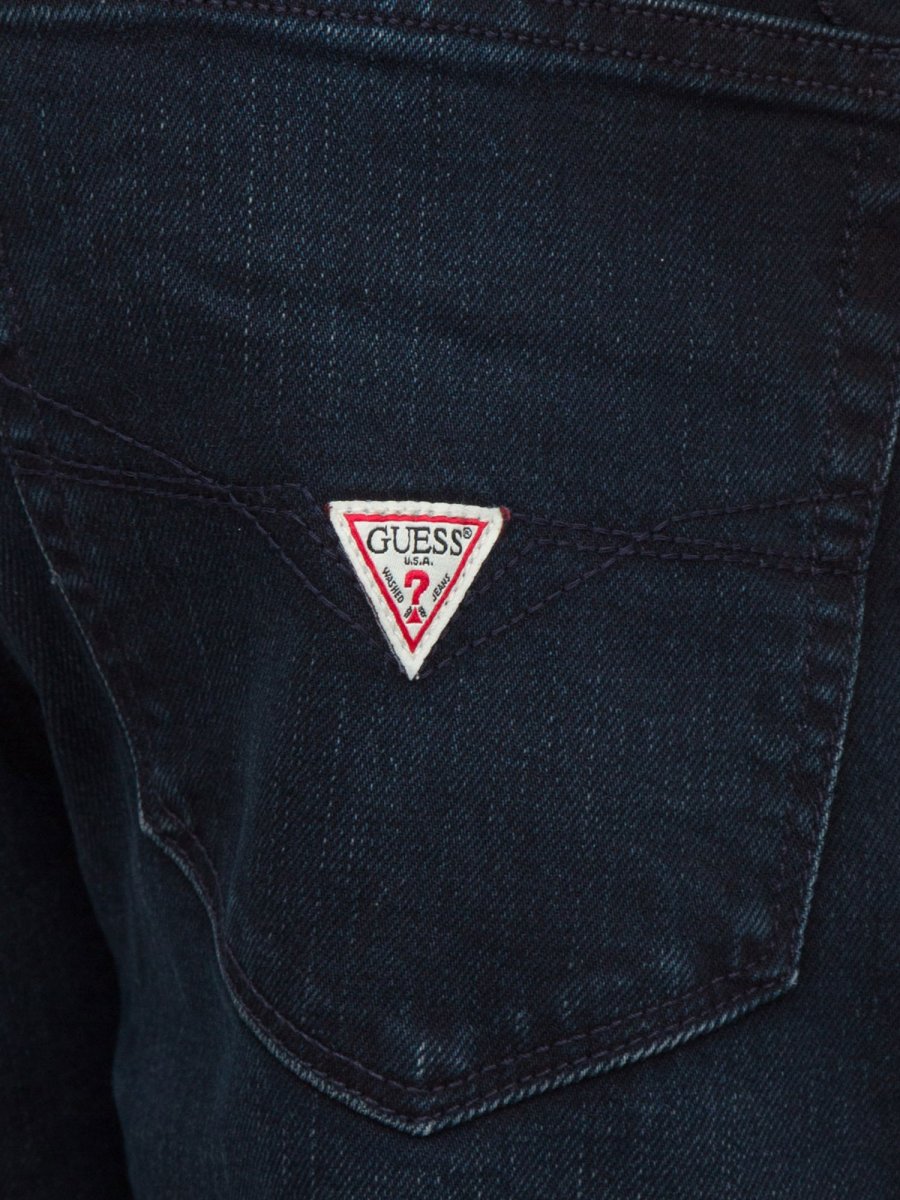 Джинси Guess slim fit з еластичної бавовни забезпечують зручну та універсальну посадку. Модель із п'ятьма кишенями, середня посадка та завужені штанини доповнені темним відтінком, який додасть вашому образу нотку сучасності. Ідеально підходить для повсякденного, але завжди вишуканого стилю.