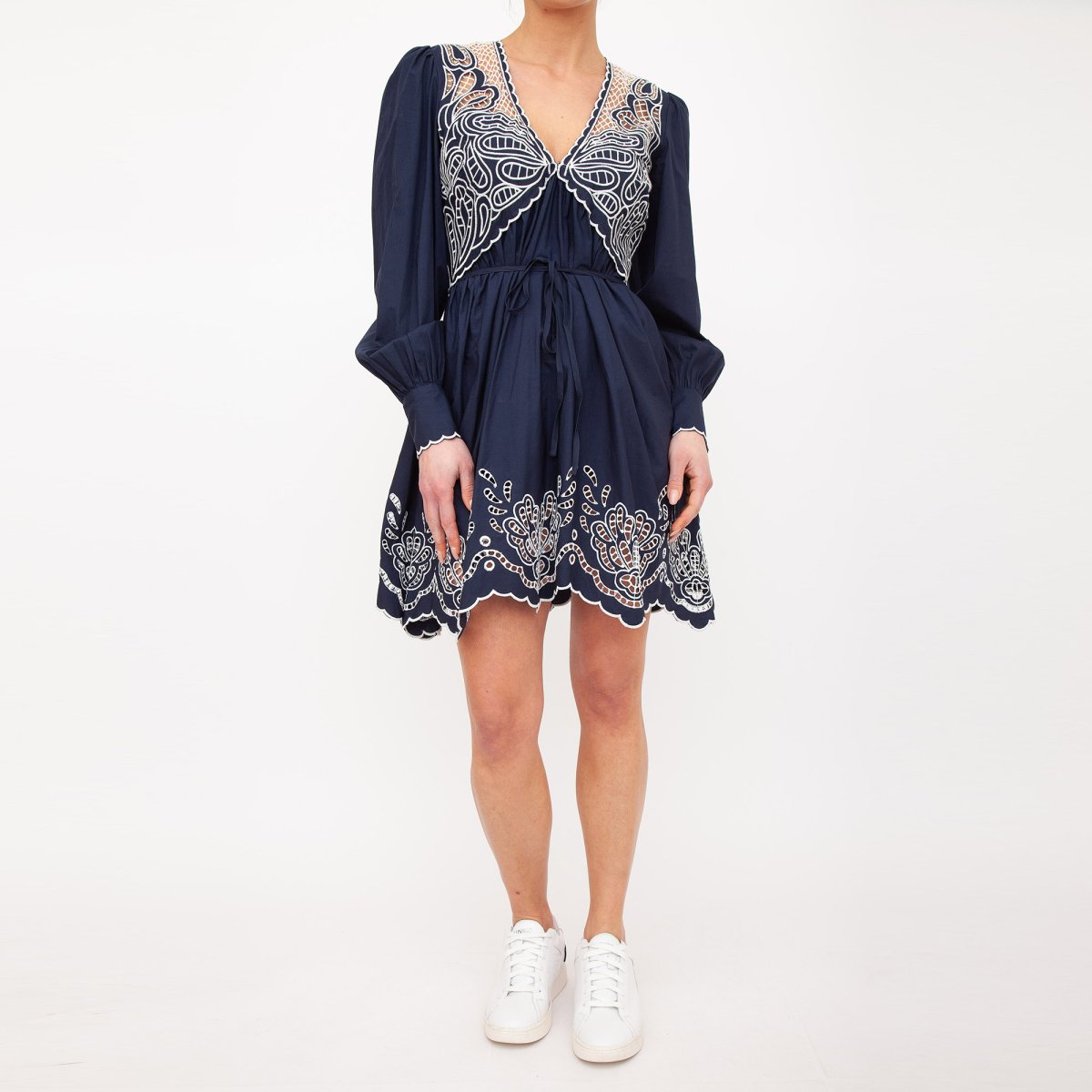 Abito corto con pizzo sangallo di TWINSET. Scollo profondo a V.