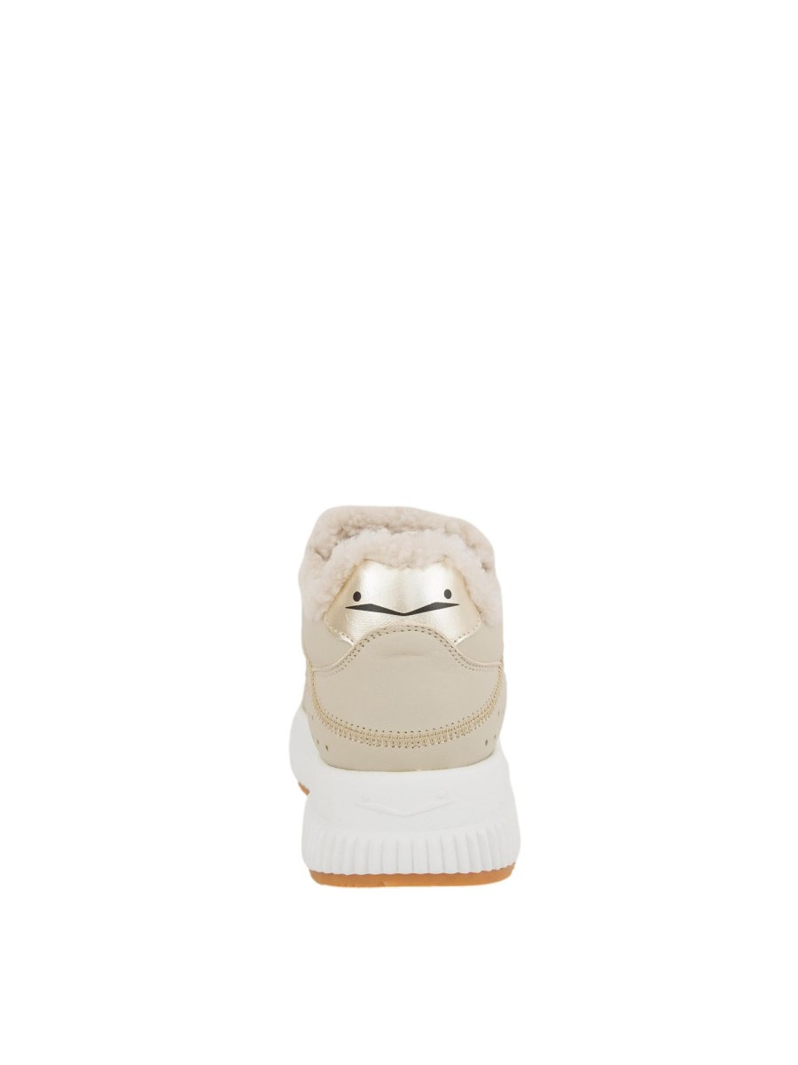 Кросівки з сітки, технічної тканини та замші, з перфорацією та золотистими деталями. Підошва з ефектом плато EVA з рифленням по краю.
