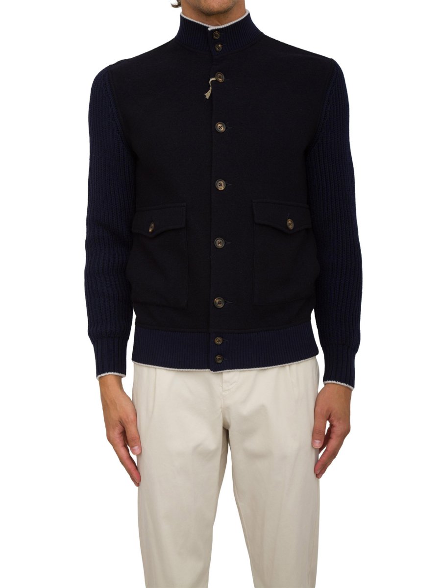 Куртка Eleventy з вовни, застібка на гудзики з логотипом, комір-стійка, довгі рукави, дві передні кишені з клапаном, прямий низ без підкладки.