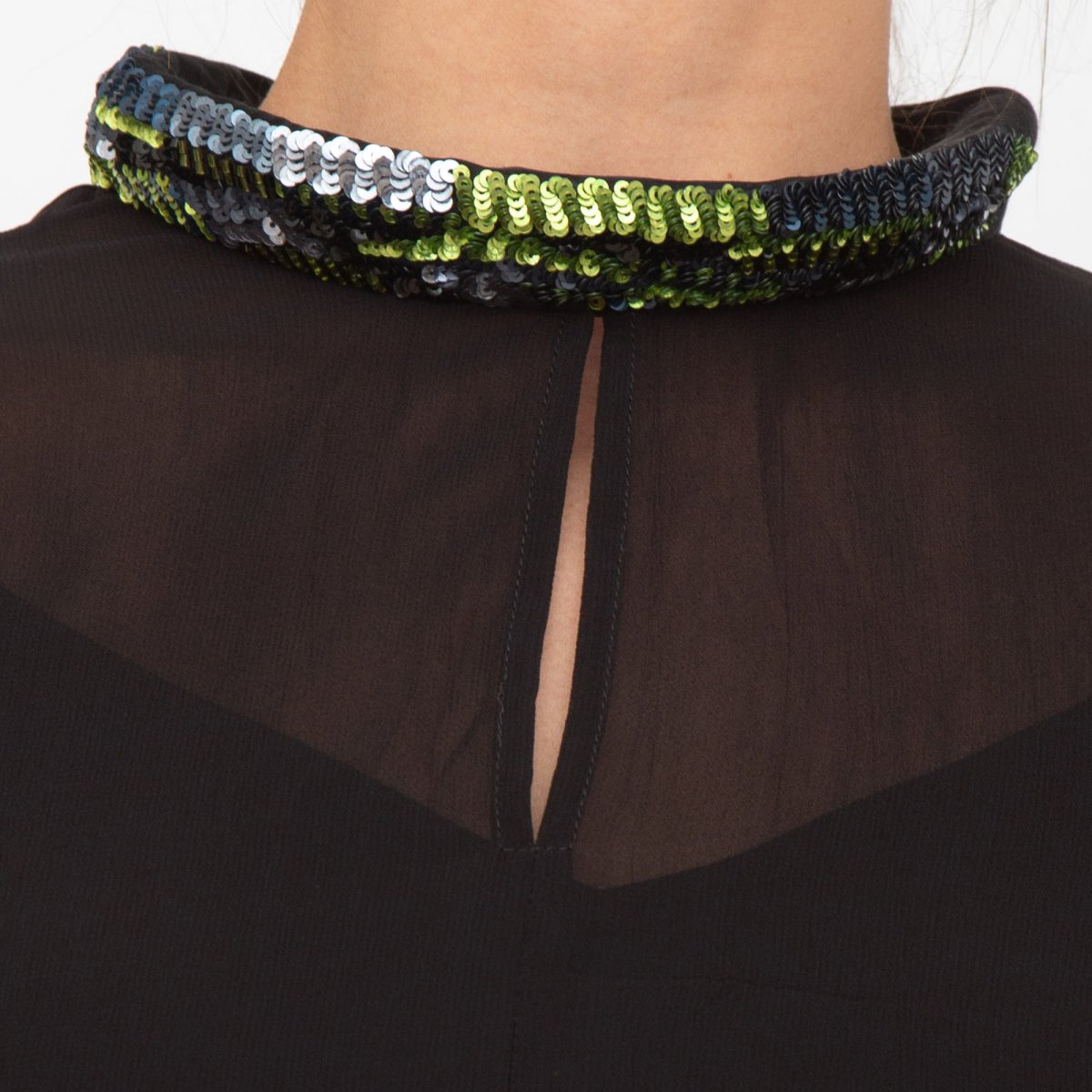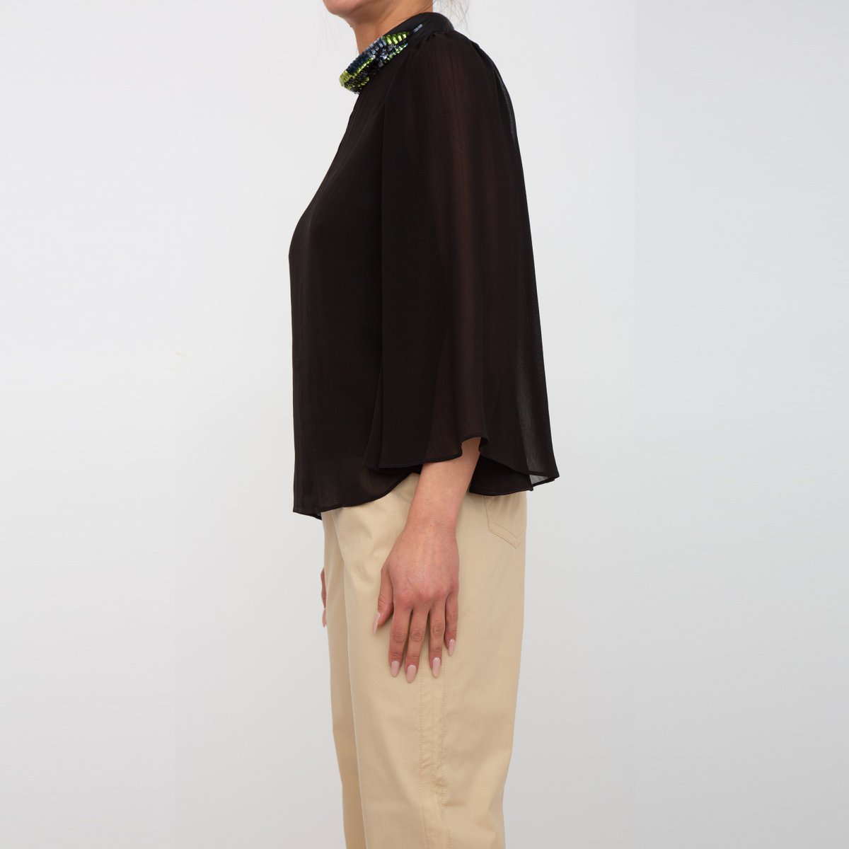 Blusa con tubolare ricamato sul collo in georgette di viscosa.