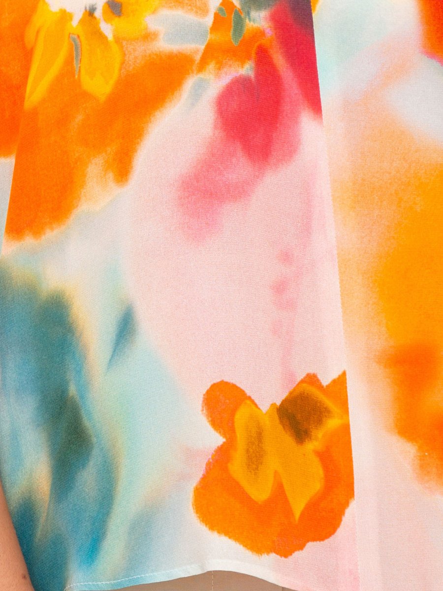 - Опис100%Blusa Marella in crêpe de Chine di seta, linea dritta. Scollo a V, maniche a tre quarti con pieghe sulla spalla.