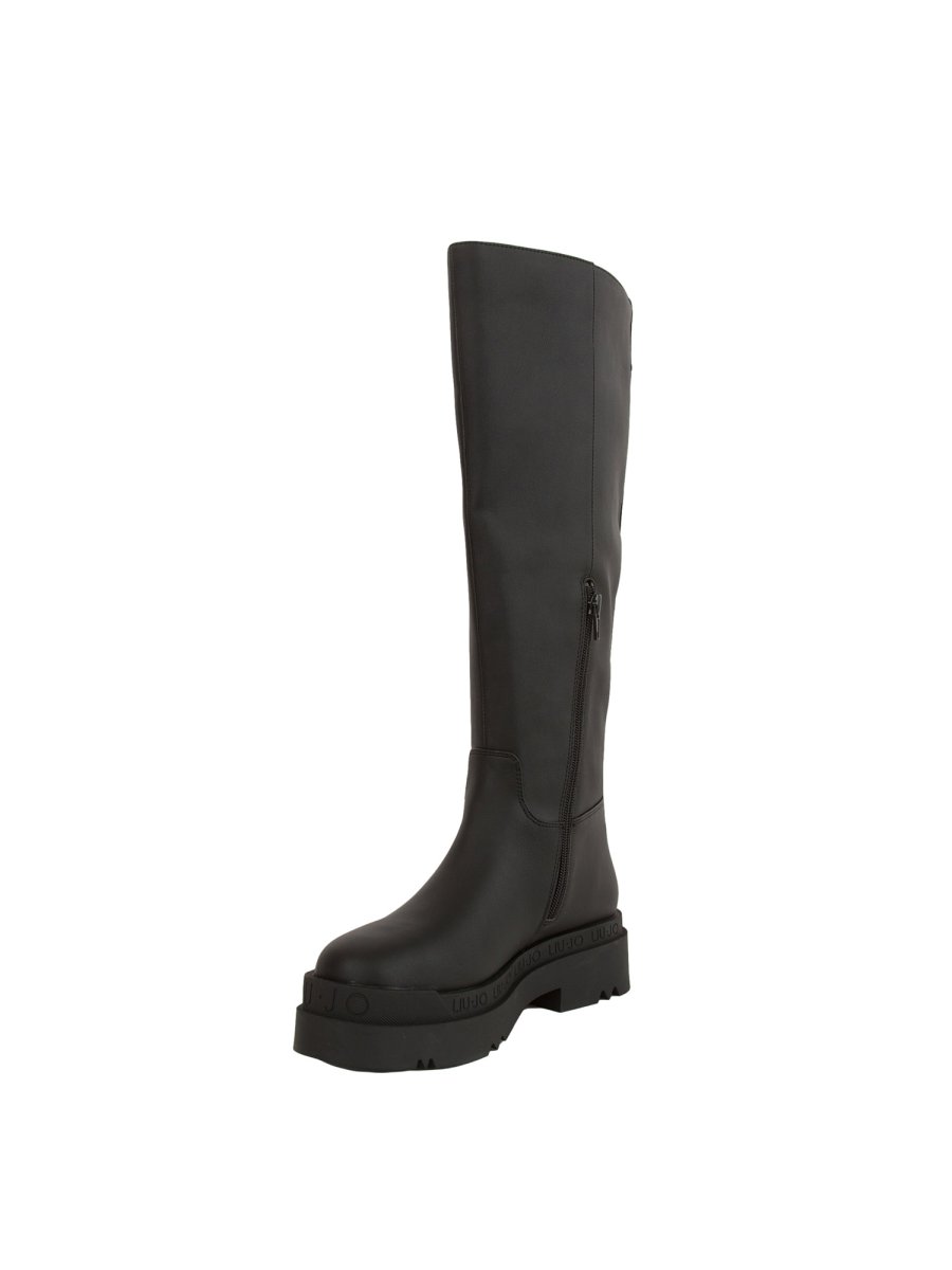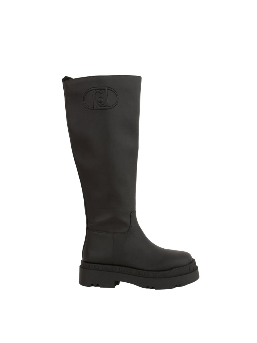 Stivali alti Liu-jo con maxi logo LJ, tape con logo, chiusura con zip sul lato interno e suola platform con logo inciso.