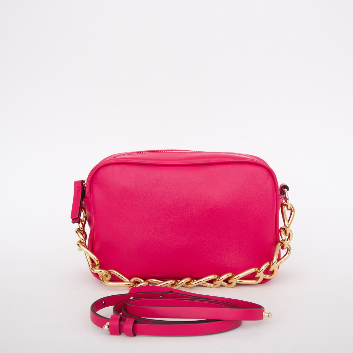 Borsa a tracolla in pelle. Dettaglio catena oro chiaro. Tracolla in pelle removibile e regolabile. Chiusura con zip. Fodera in cotone stampata con motivo iconico point d'esprit. Finiture e parti metalliche oro chiaro.