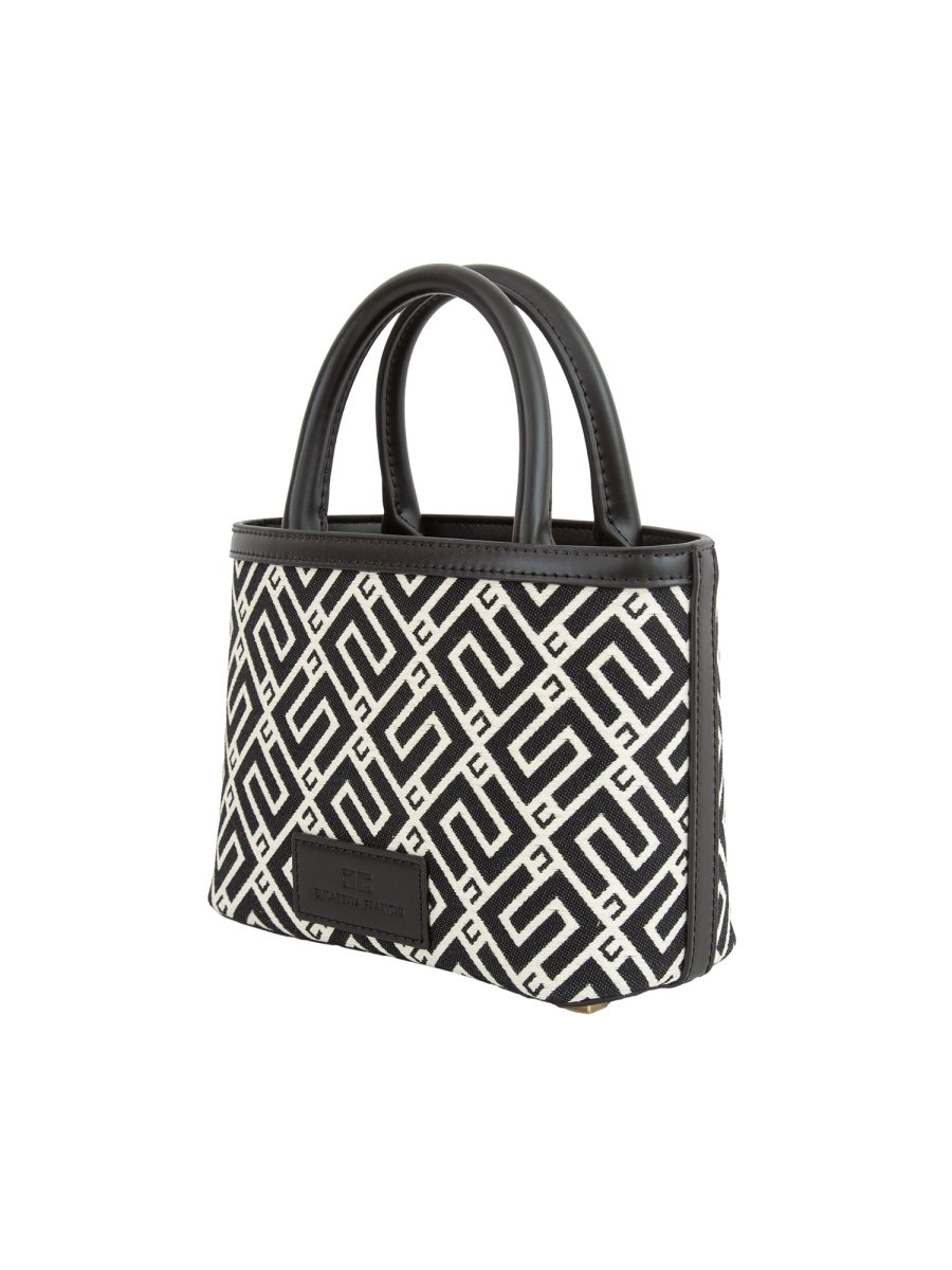 Shopper piccola Elisabetta Franchi in tessuto jacquard con stampa logo all-over e inserti in materiale sintetico effetto spazzolato. È caratterizzata da dettagli interni color fluo e tracolla di servizio per portabilità a spalla.