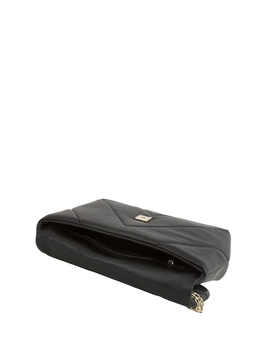 Borsa a tracolla Patrizia Pepe realizzata in pelle di capretto imbottita e trapuntata, tracolla in catena con spallaccio in pelle e tasca piatta e tasca piatta con zip.