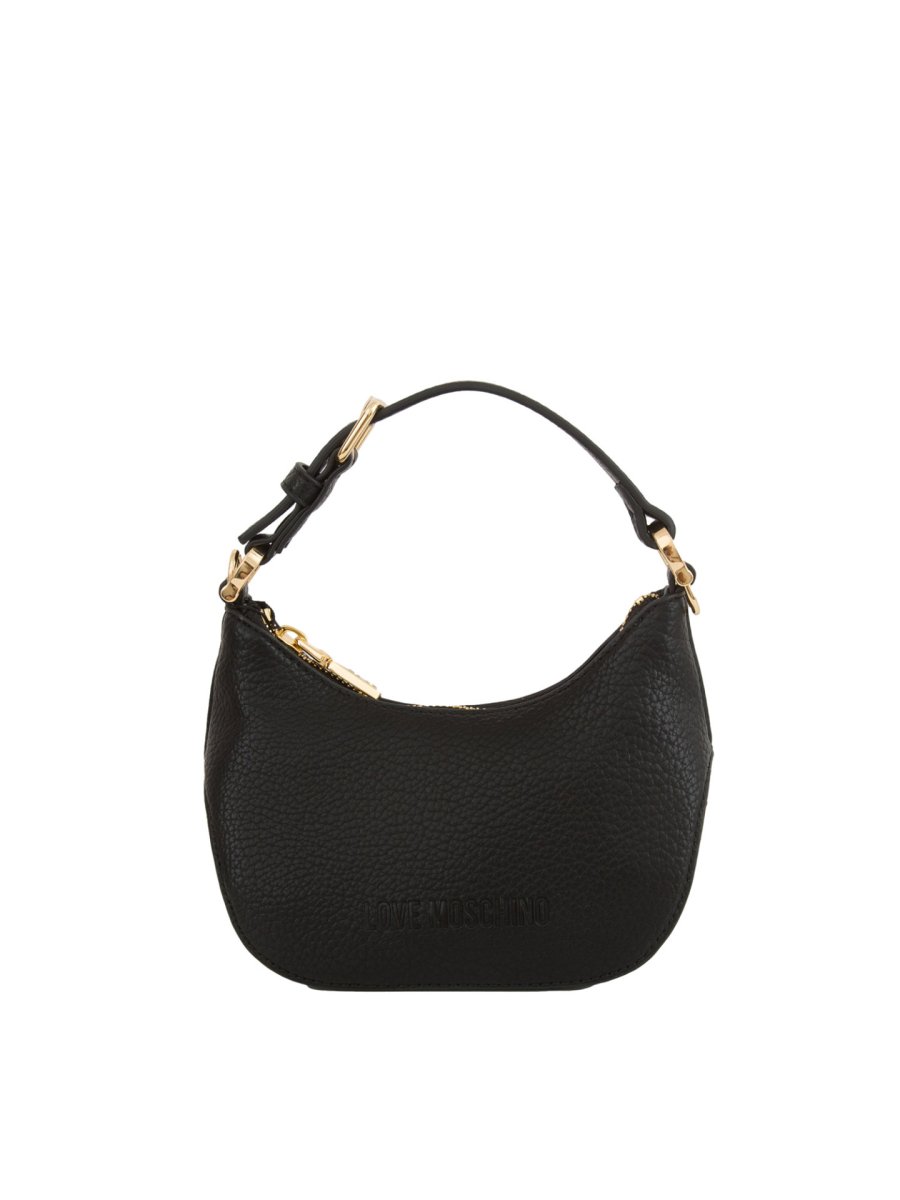 Borsa a spalla Love Moschino con placca logo in lettere color oro, logo inciso, chiusura superiore con zip, manico singolo, tasca interna a soffietto e tracolla rimovibile. Profondità 8 cm Altezza 10 cm Larghezza 17 cm