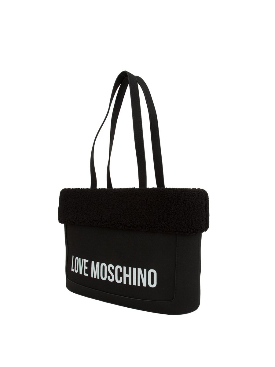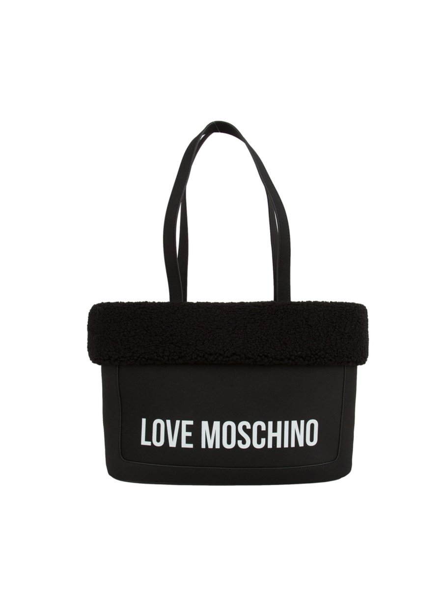 Borsa tote con logo Love Moschino, pelle cruelty-free, shearling, stampa con logo sul davanti, parte superiore aperta, chiusura nascosta con bottoni a pressione, due manici lunghi, tasca interna con zip e tasca interna a soffietto. Profondità 13 cm Altezza 24 cm Larghezza 39 cm.