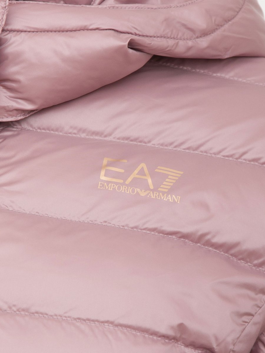 Жіноча куртка з капюшоном EA7 Emporio Armani ідеальна для зими завдяки стьобаному дизайну, який гарантує теплоізоляцію. Ця приталена куртка із центральною блискавкою та золотистими деталями підкреслює стильність силуету. Логотип EA7 на грудях для елегантного та виразного вигляду».