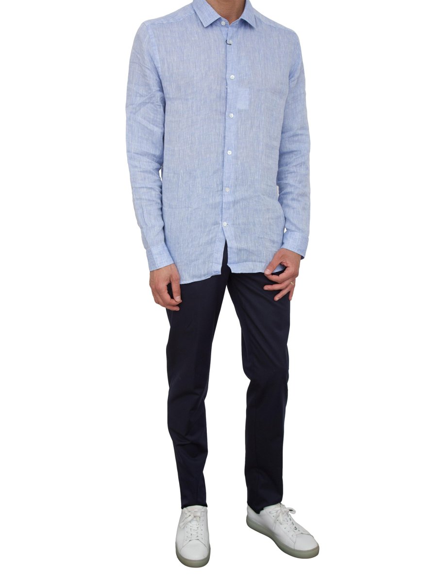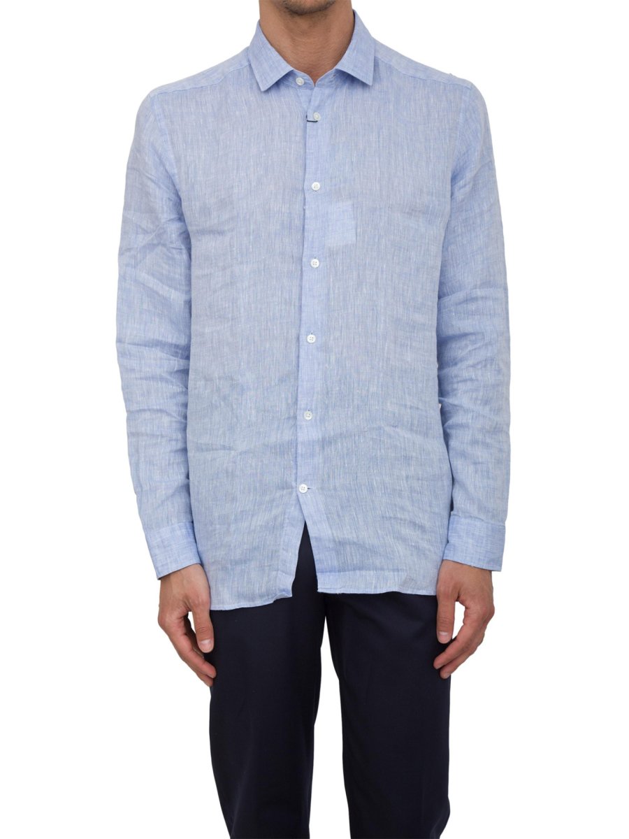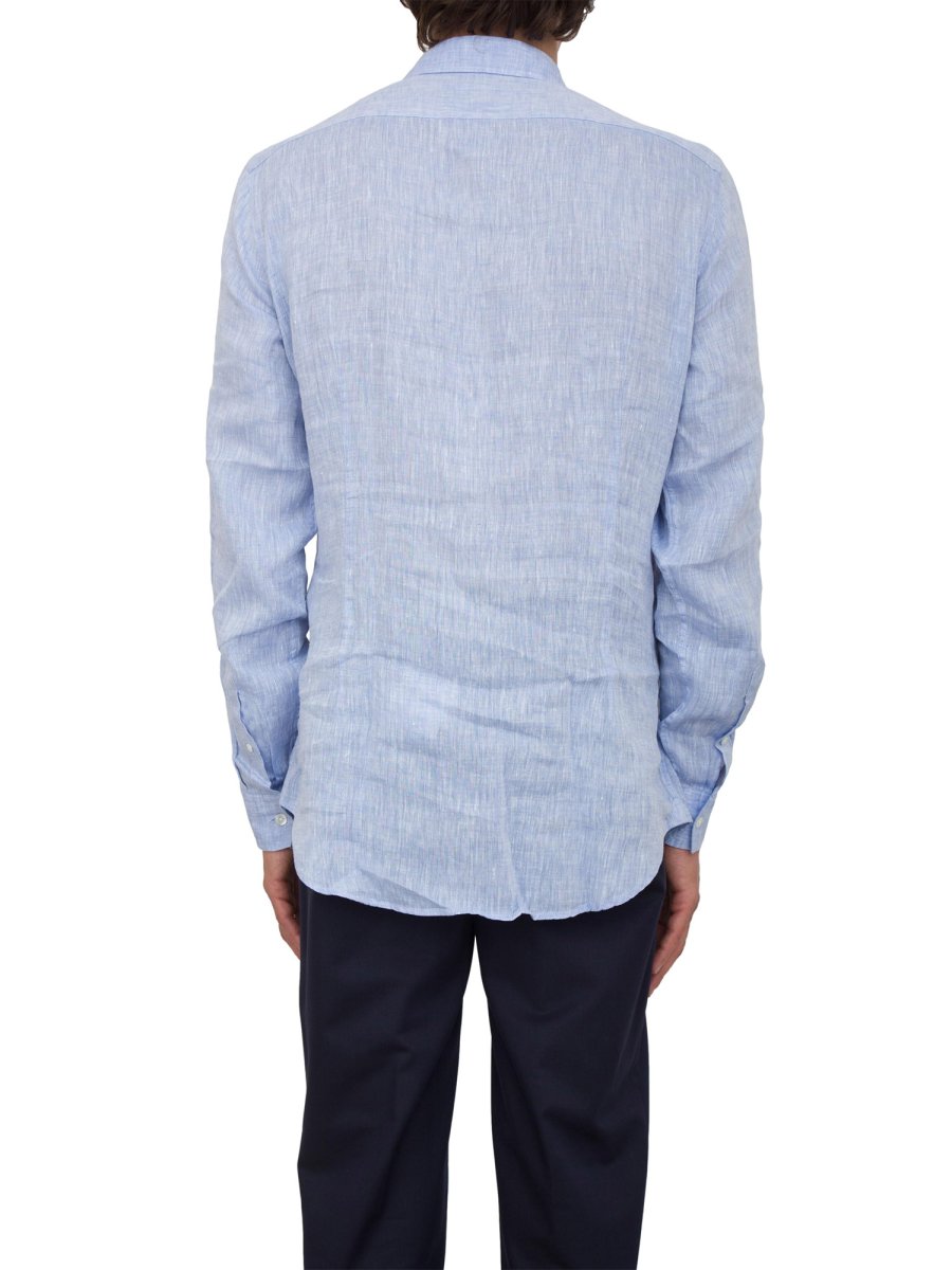 Сорочка Corneliani із чистого льону, прямого крою, з довгими рукавами та закругленими манжетами.