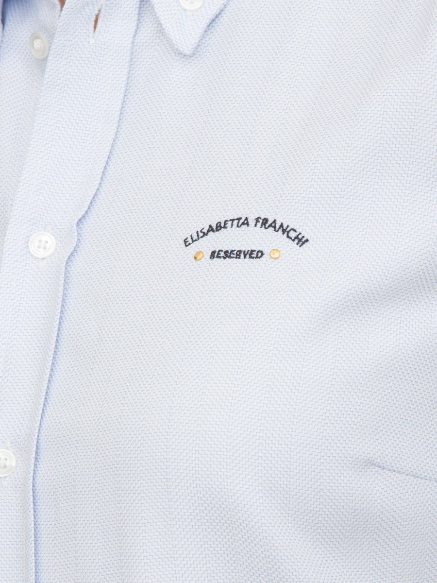 Camicia a maniche lunghe in popeline di cotone armaturato. È caratterizzata da logo ricamato a filo in contrasto colore e micro rivetti in metallo dorato.