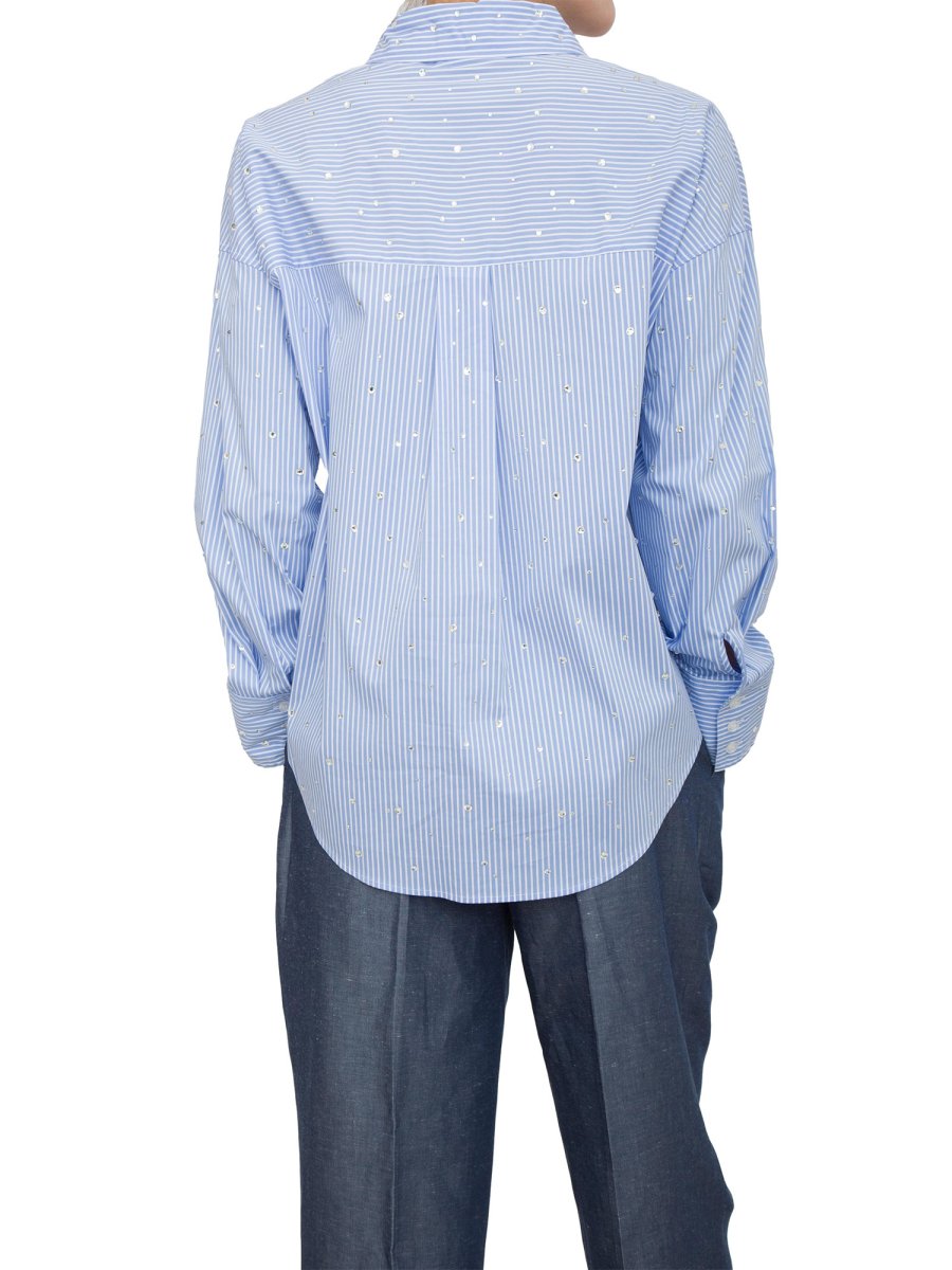 Сорочка Liu-jo з бавовняної суміші з накладними стразами, довгими рукавами, класичним коміром та застібкою на гудзики.