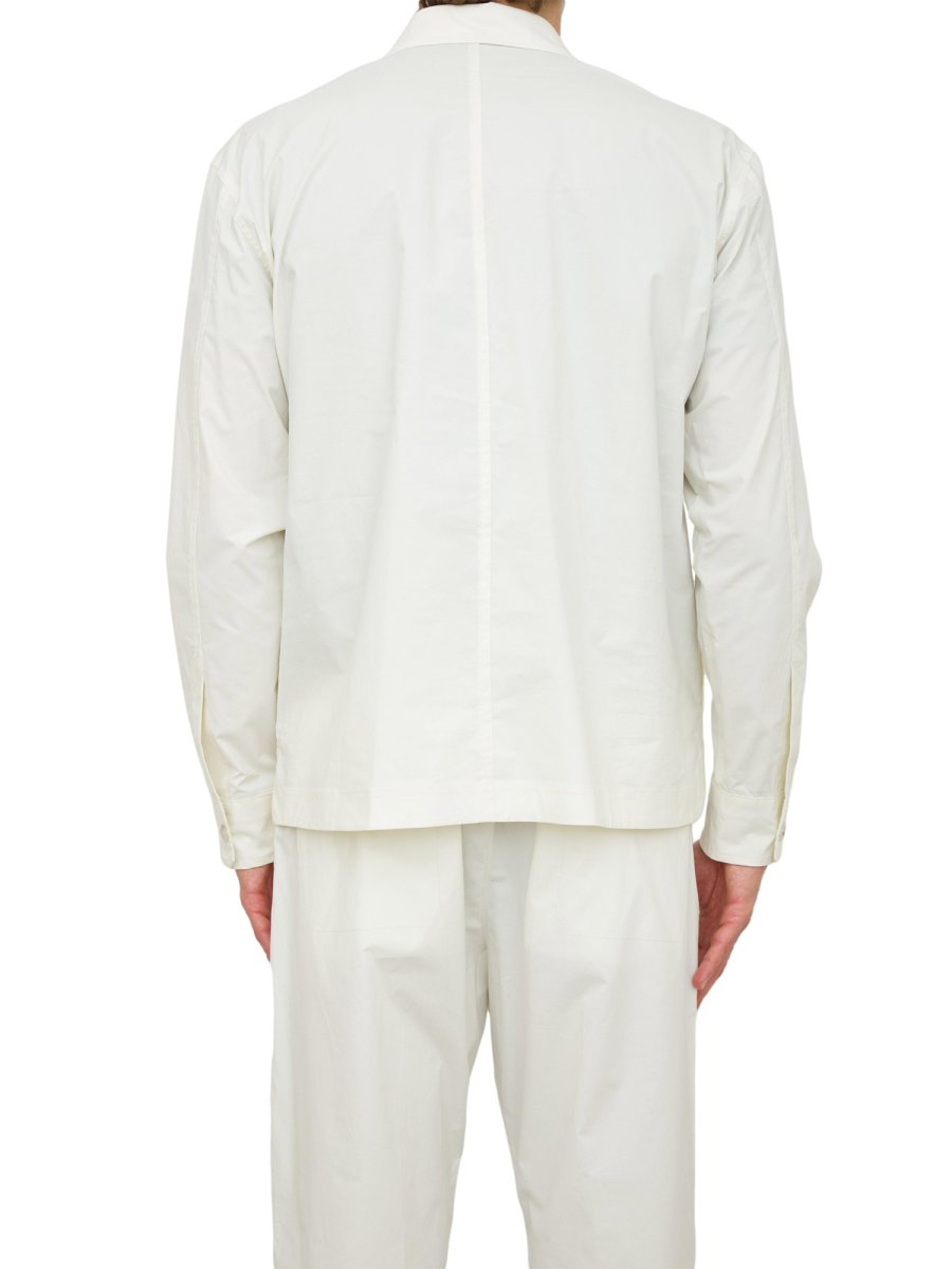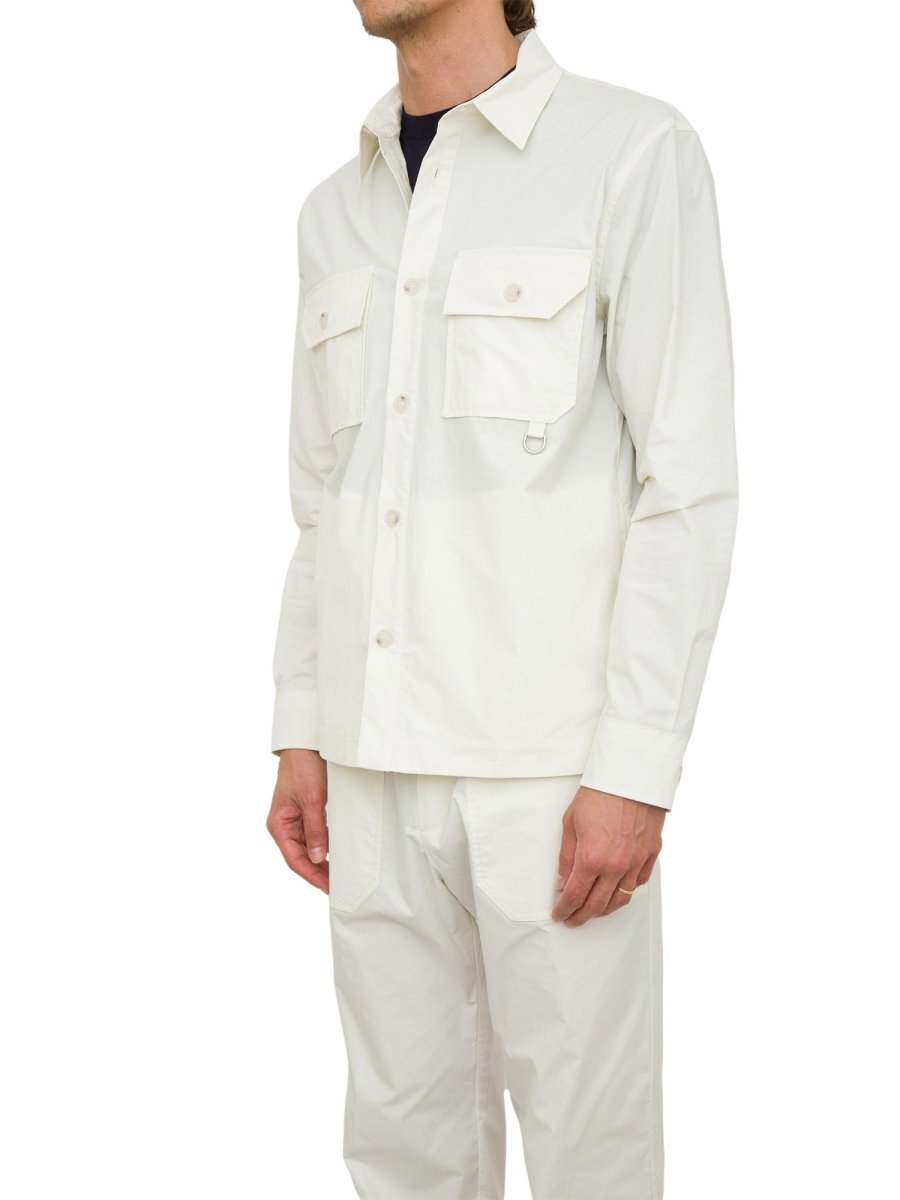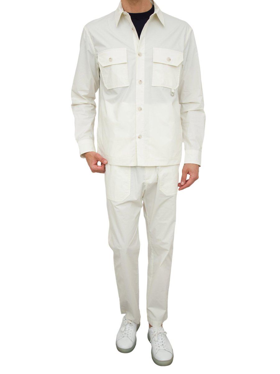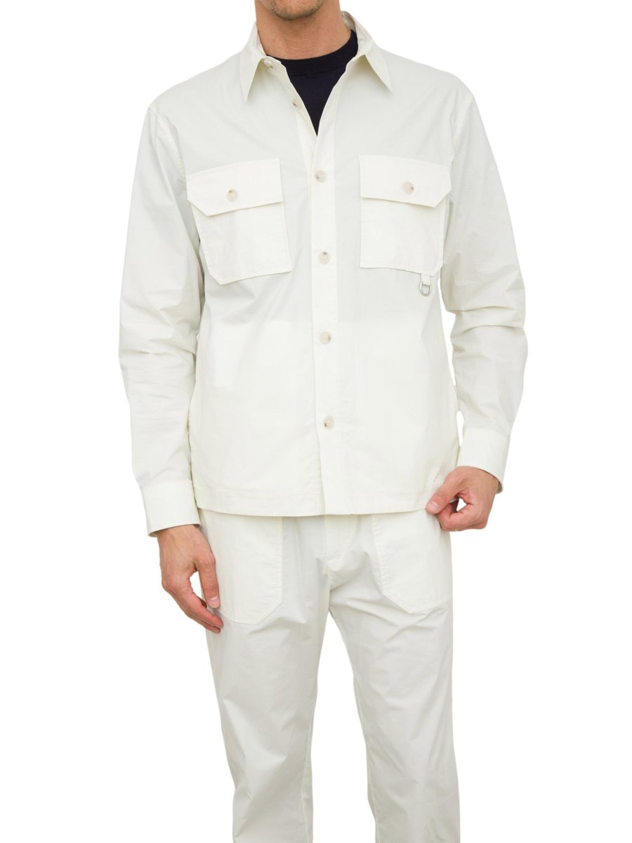 Camicia Paolo Pecora in popeline di cotone, tasche a toppa con patta e bottone, a filetto laterali e chiusura con bottoni.