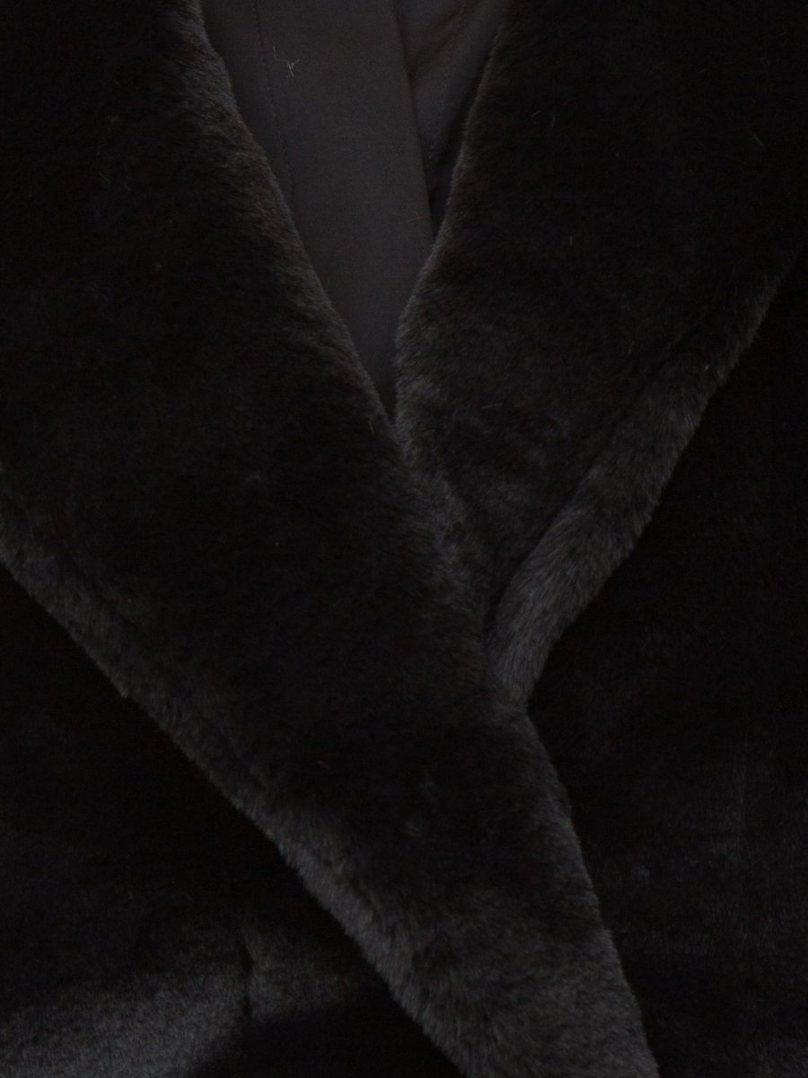 Cappotto reversibile da donna Hetregò realizzato in tessuto eco fur con chiusura con bottoni a pressione e tasche laterali.