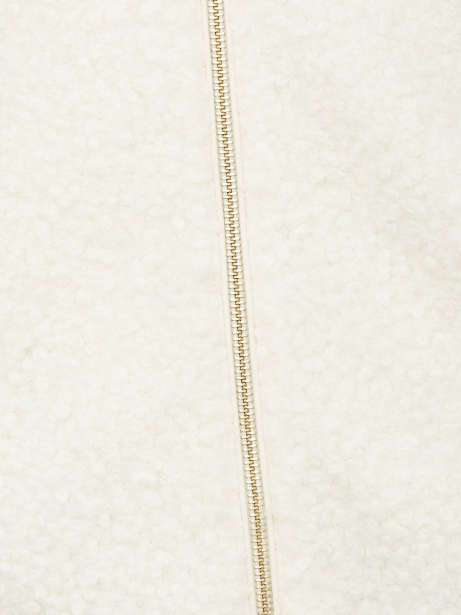 Пальто Emme Marella з букле, нейлонові деталі, прямий крій, довжина нижче стегон, комір зі знімним м’яким капюшоном на ґудзиках, довгі рукави, золотиста застібка-блискавка, прорізні кишені та підкладка з технічної тканини.