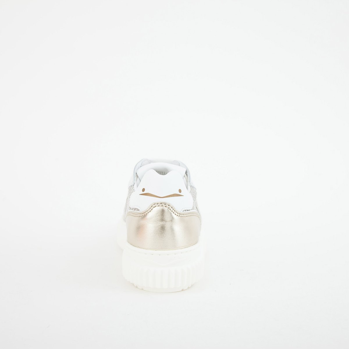 Sneaker low rise in tessuto tecnico con punta in suede e dettagli in pelle dorata. Fondo in gomma ultra leggera con zigrinature.