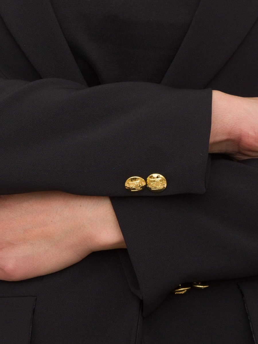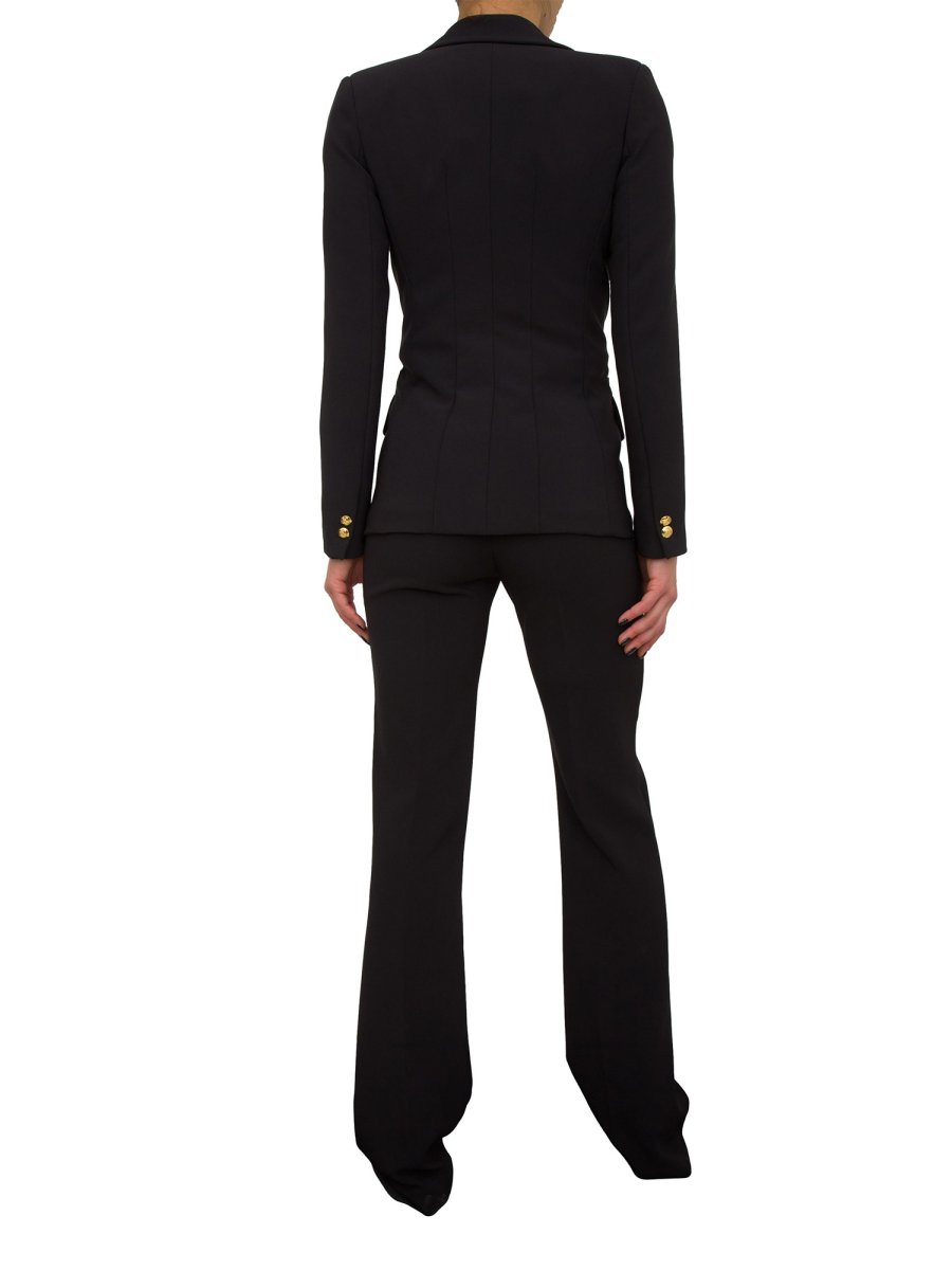 - Опис95% POLYESTER 5%Костюм Elisabetta Franchi з фантастичного еластичного крепу складається з приталеного піджака з однобортною застібкою, прорізними кишенями та клапанами, а також прямих штанів, які злегка розкльошені внизу та мають заклепку з логотипом на поясі. Чудовий для офіційних, елегантних чи урочистих образів.Модель має зріст 1,72 м і носить 40 розмір.Характеристики: