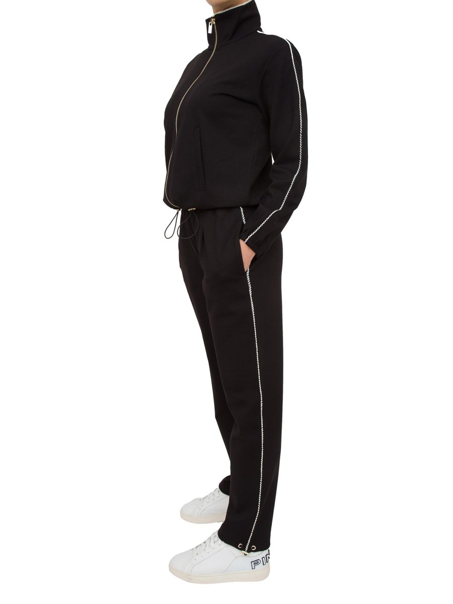 Completo Twinset in viscosa stretch con passamaneria di perline composto da felpa con zip e da pantaloni joggers con elastico in vita.