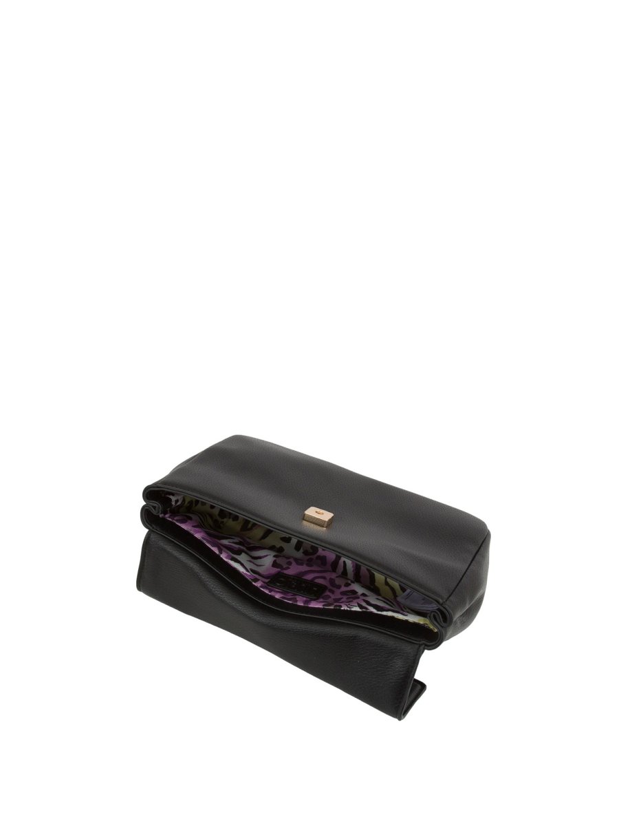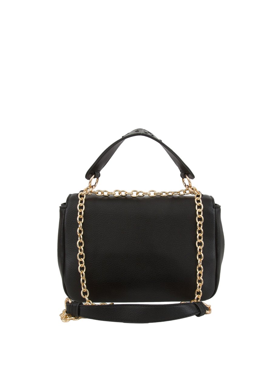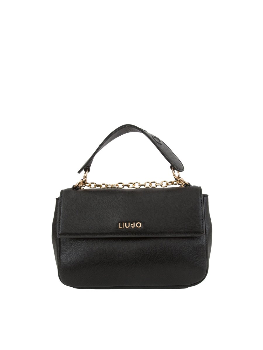 Borsa tracolla nera ecosostenibile Liu-Jo realizzata in PU effetto bottalato, comodo manico con maxi logo a rilievo, tracolla con catena e chiusura con patta e bottone magnetico.
