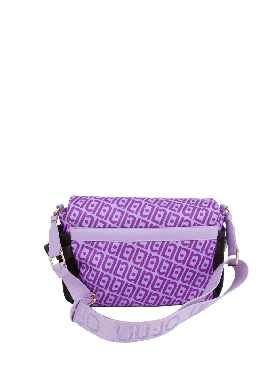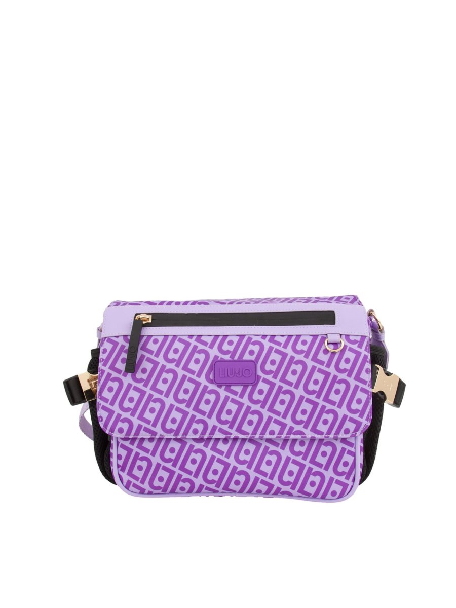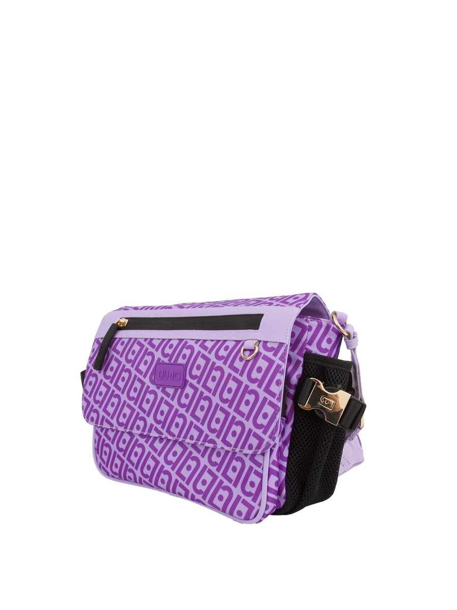 Borsa a tracolla Liu-jo realizzata in nylon, stampa logo all over, tracolla logata regolabile in gros grain, etichetta logata sul davanti, tasche frontali con zip , tasche laterali in rete mesh con fibbia tuc, chiusura con patta e bottone magnetico e fodera interna con logo.