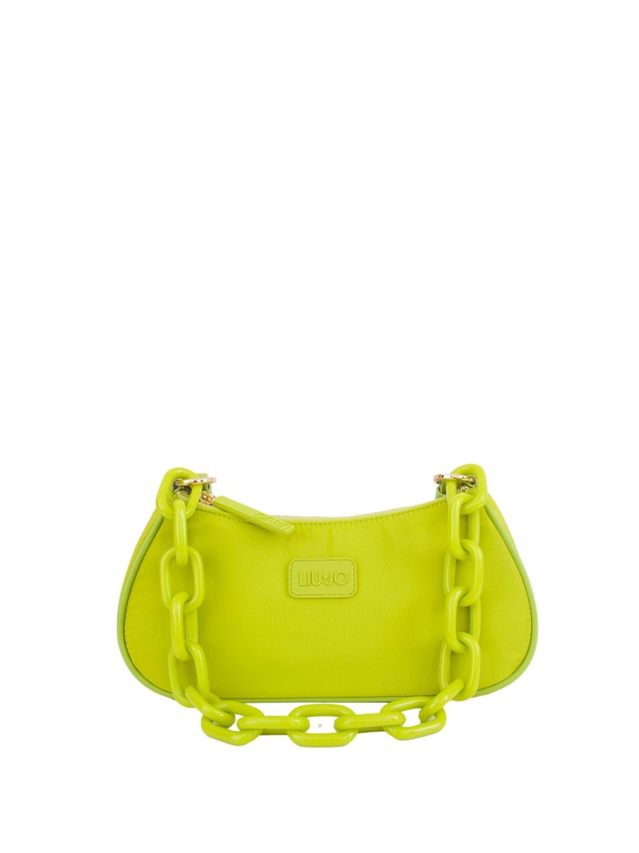 Borsa a tracolla Liu-jo in nylon, stampa logo all over, manico a catena, tracolla logata regolabile in gros grain, patch logata sul davanti, fodera interna con logo e chiusura con zip.