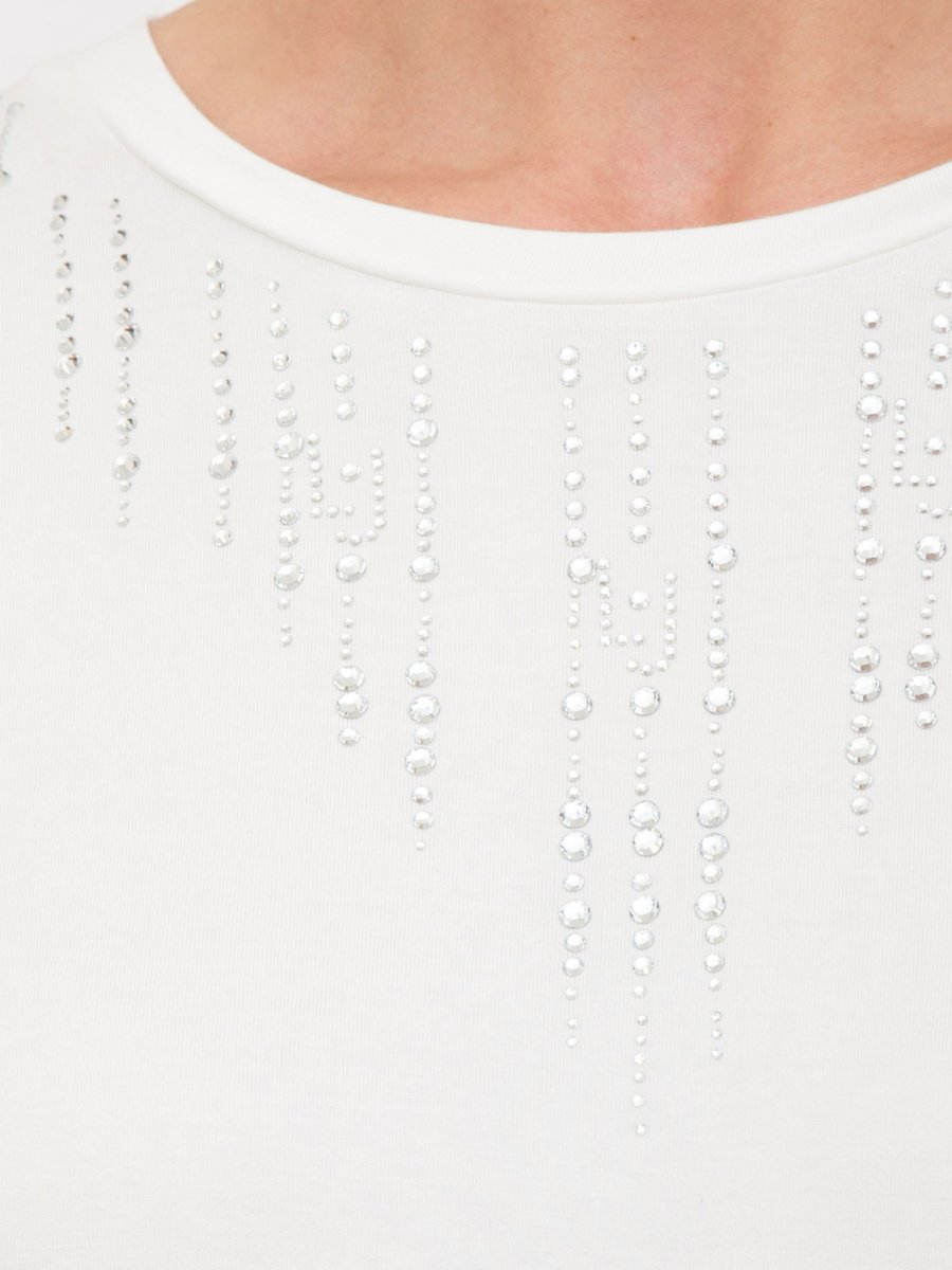 T-shirt donna Liu-Jo realizzata in jersey di cotone stretch, strass, taglio girocollo e maniche corte.