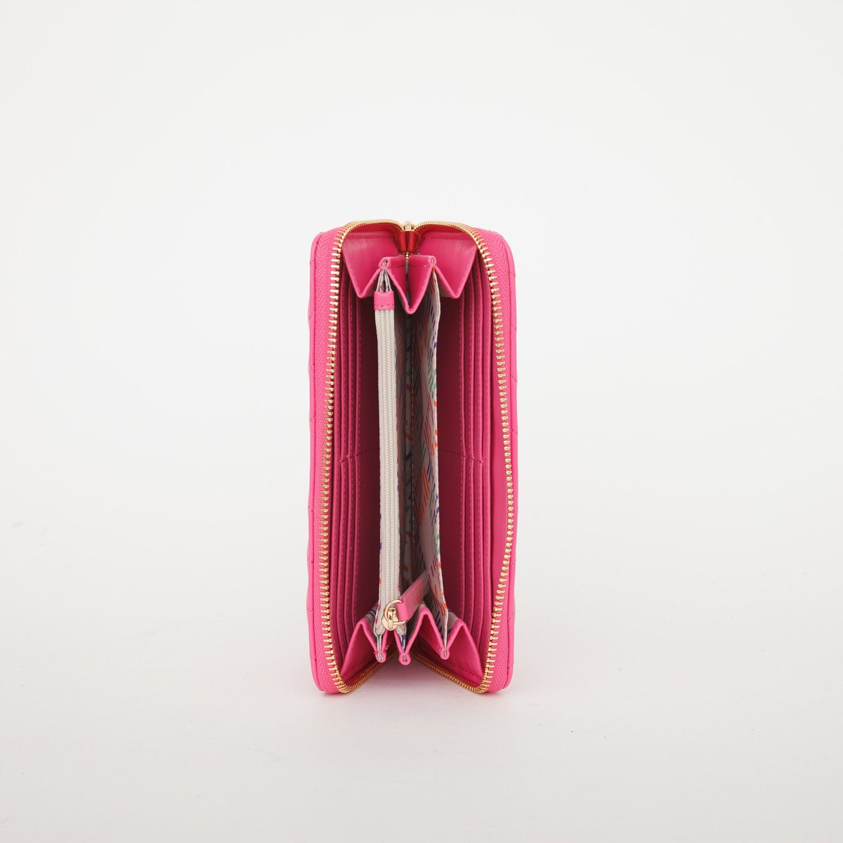 Portafoglio zip around ecosostenibile in PU, lavorazione matelassé, logo in metallo sul davanti, scomparto per tessere e carte business, scomparto per monete con zip, scomparto per banconote e chiusura con zip. Misure: 19 x 2 x 10 cm