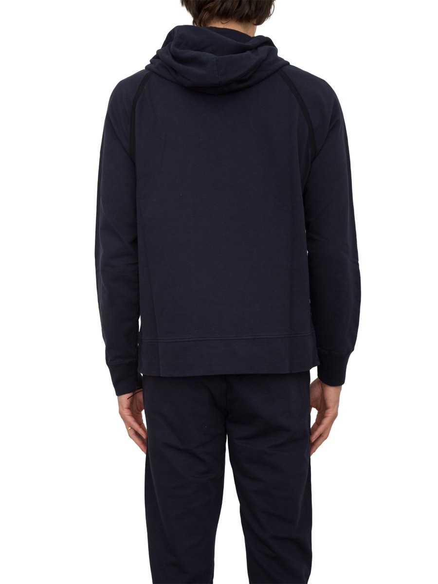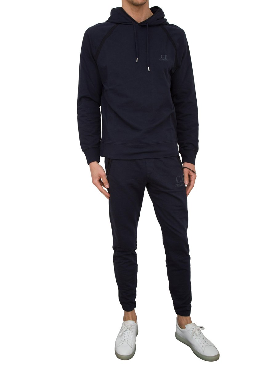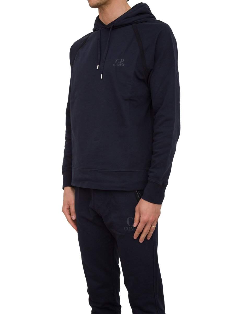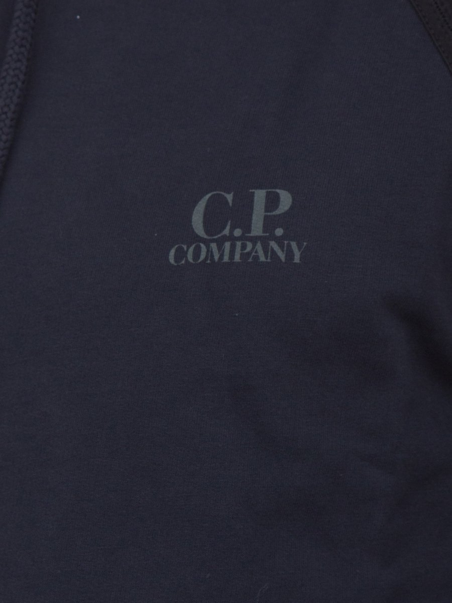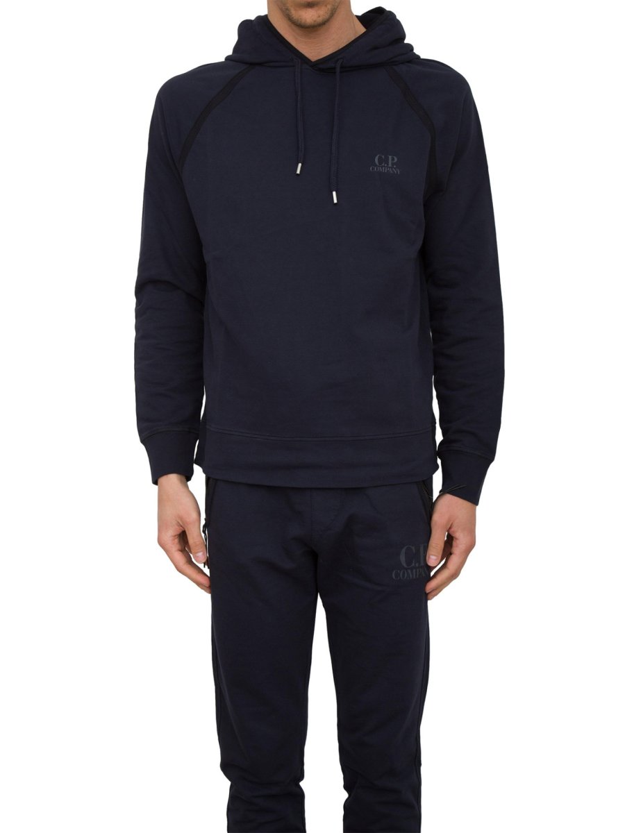 Толстовка чоловіча з капюшоном від C.P. Company з легкого бавовняного флісу з начісом, класичного крою. Модель має регульований капюшон із зав'язками, принт з логотипом на грудях та контрастний рядок на проймах.