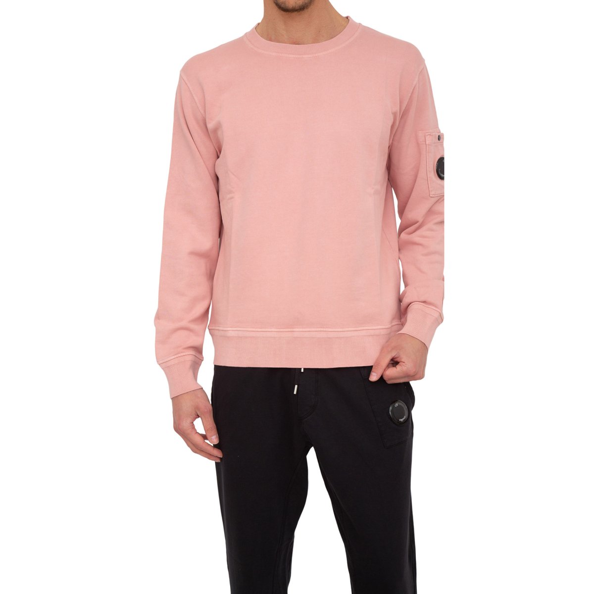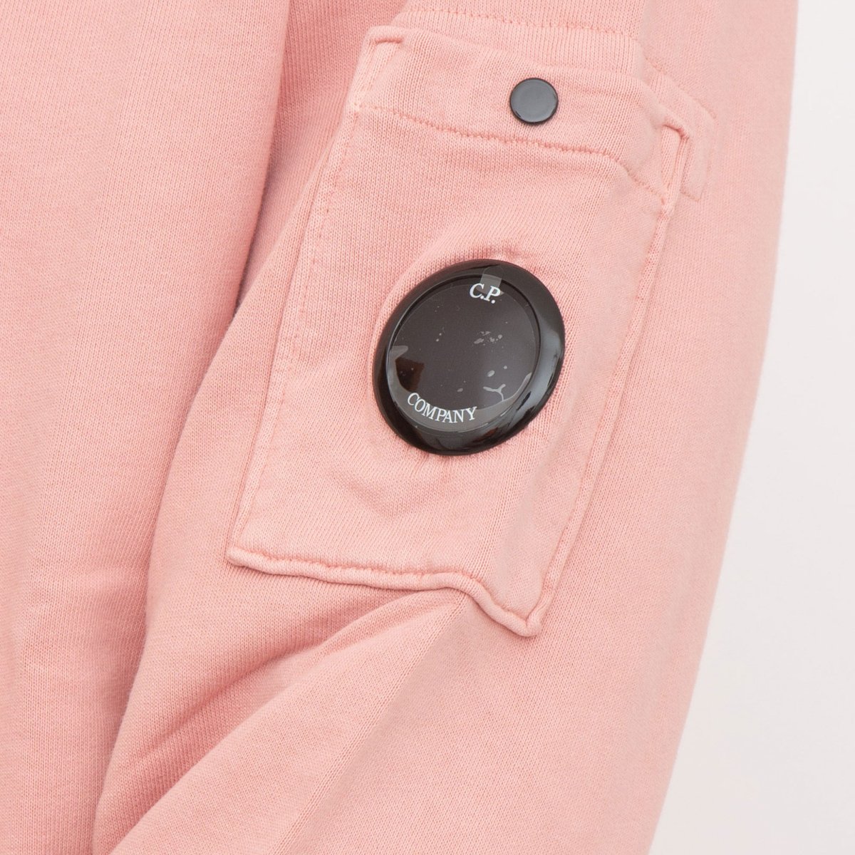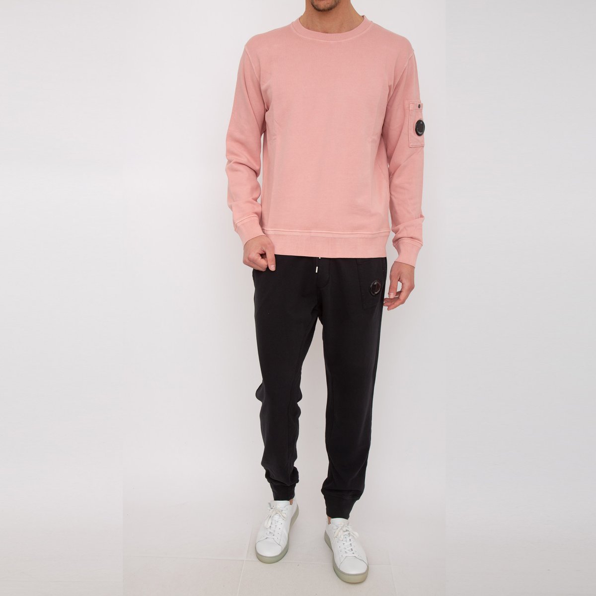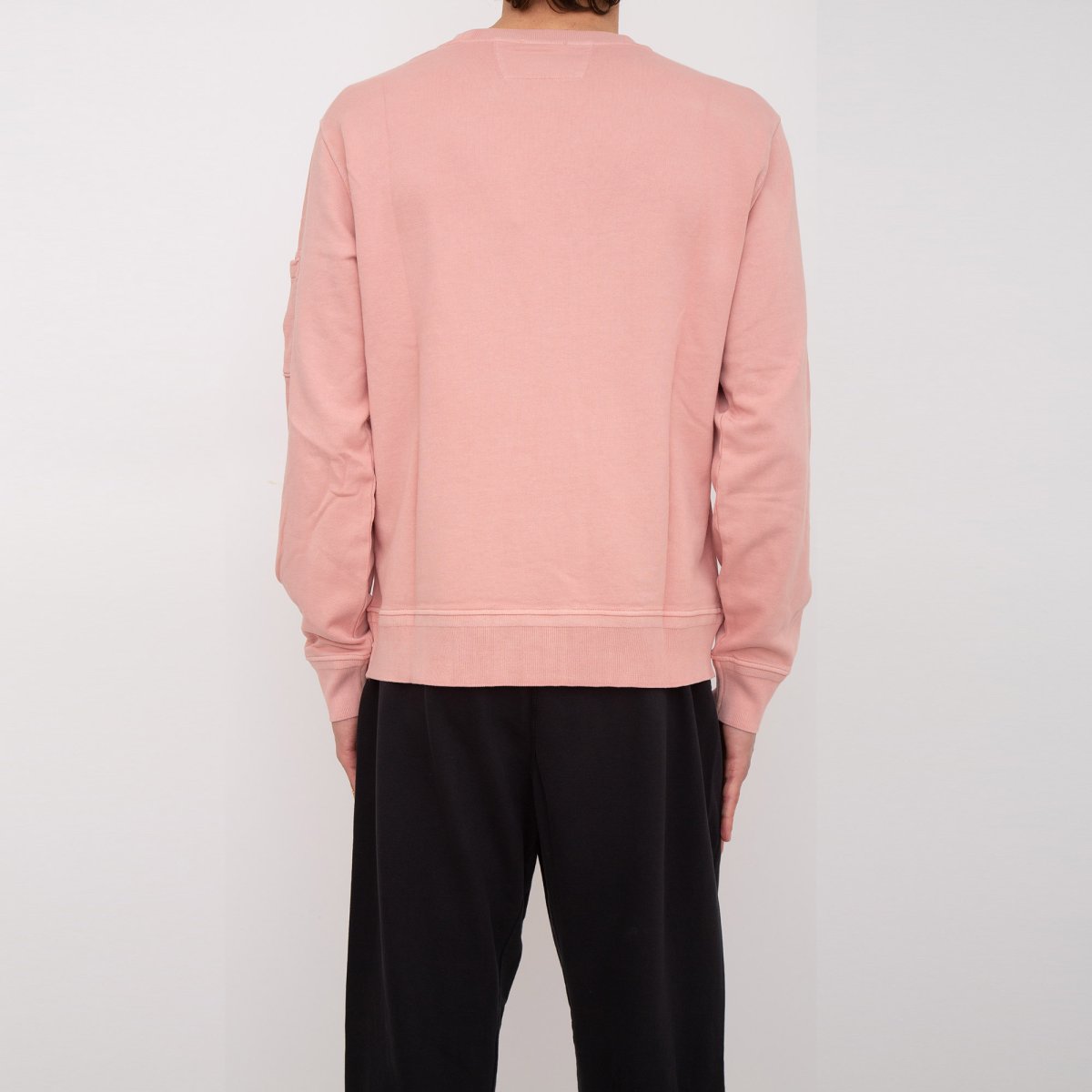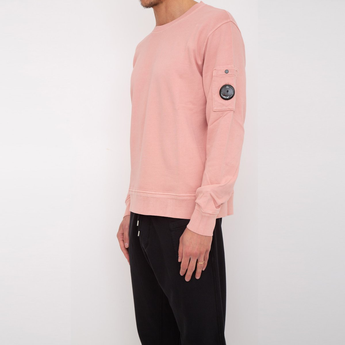 Felpa girocollo con finiture a costine e lente C.P. Company sul taschino della manica. È in cotone felpato di peso medio e resist dyed per ottenere varie sfumature e tonalità.