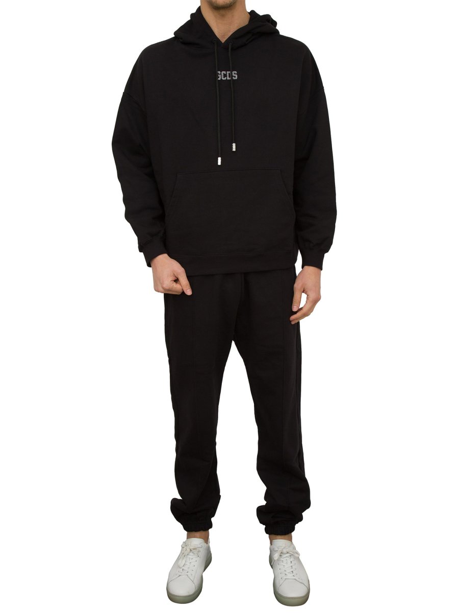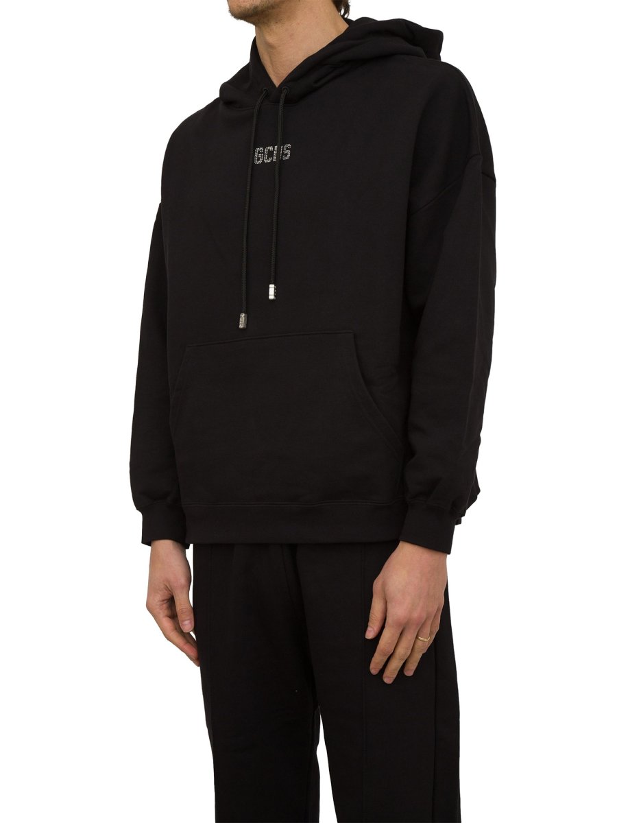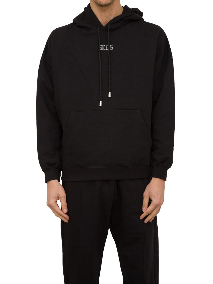 Felpa oversize realizzata in jersey di cotone. La silhouette con cappuccio regolabile e tasca a marsupio è arricchita dal dettaglio del logo in strass sulla parte anteriore.