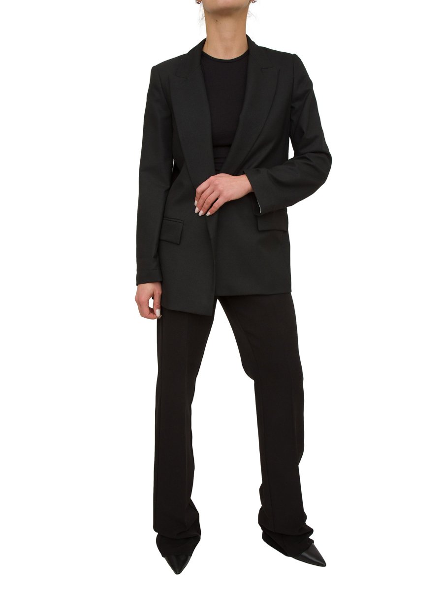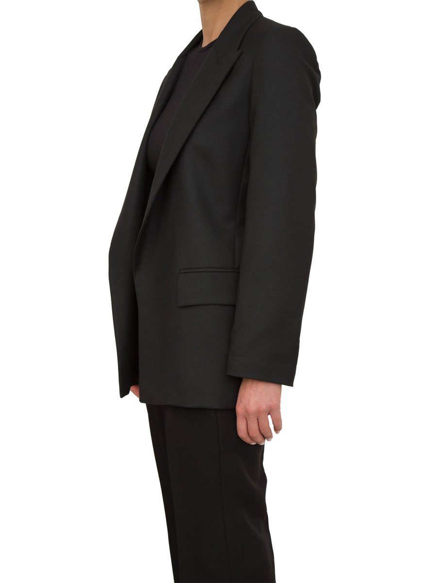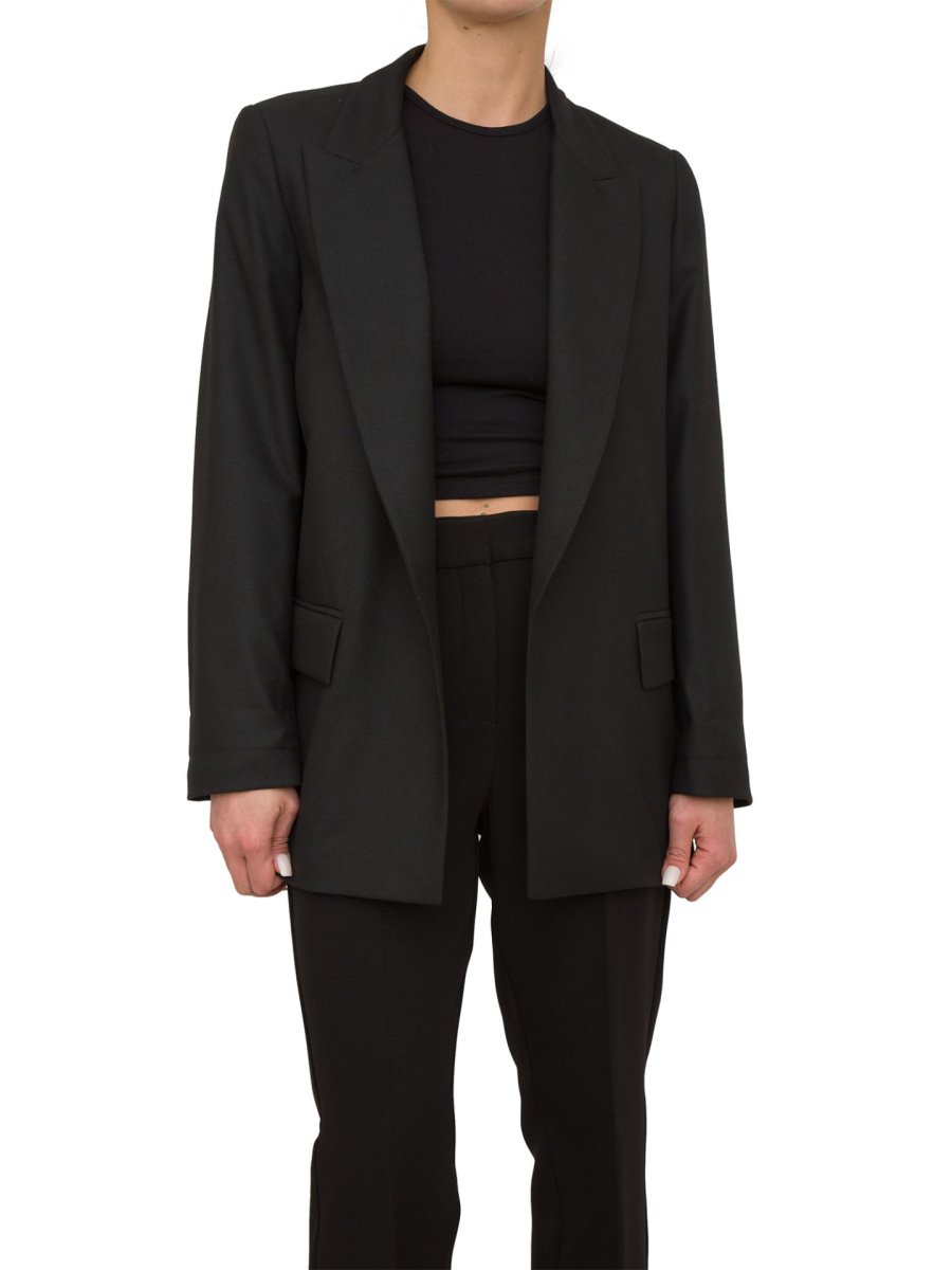 Blazer in flanella stretch, linea dritta. Collo a rever, maniche lunghe con spalle leggermente over. Senza chiusura, tasche con patta. Semifoderato.