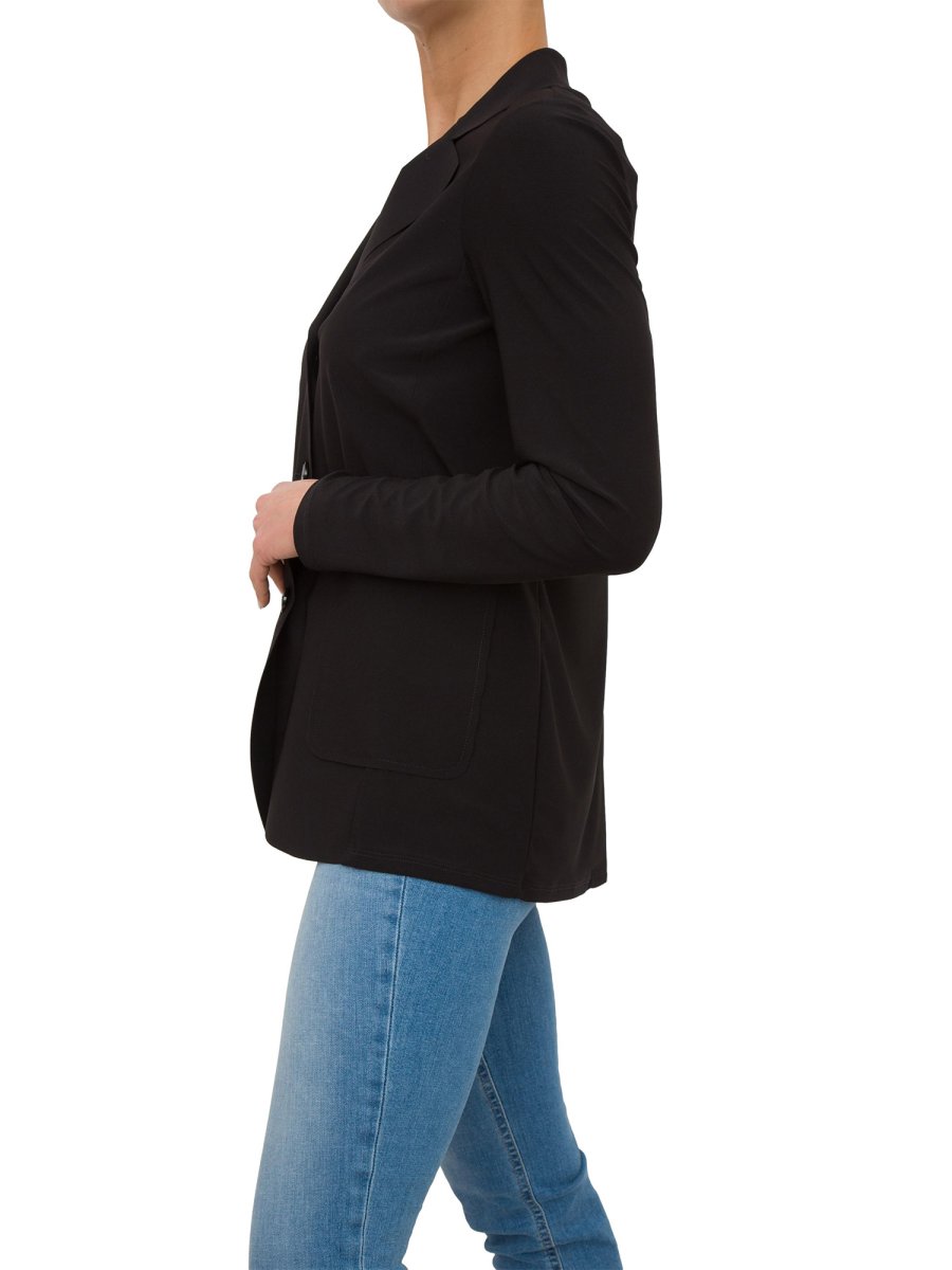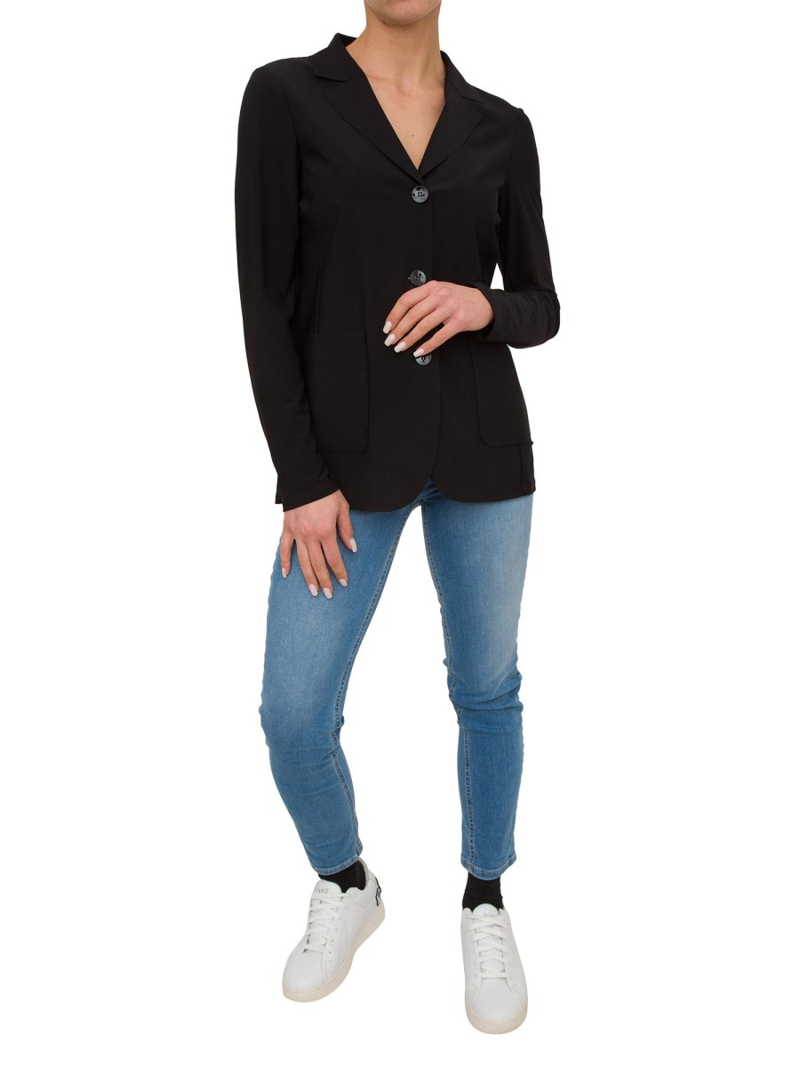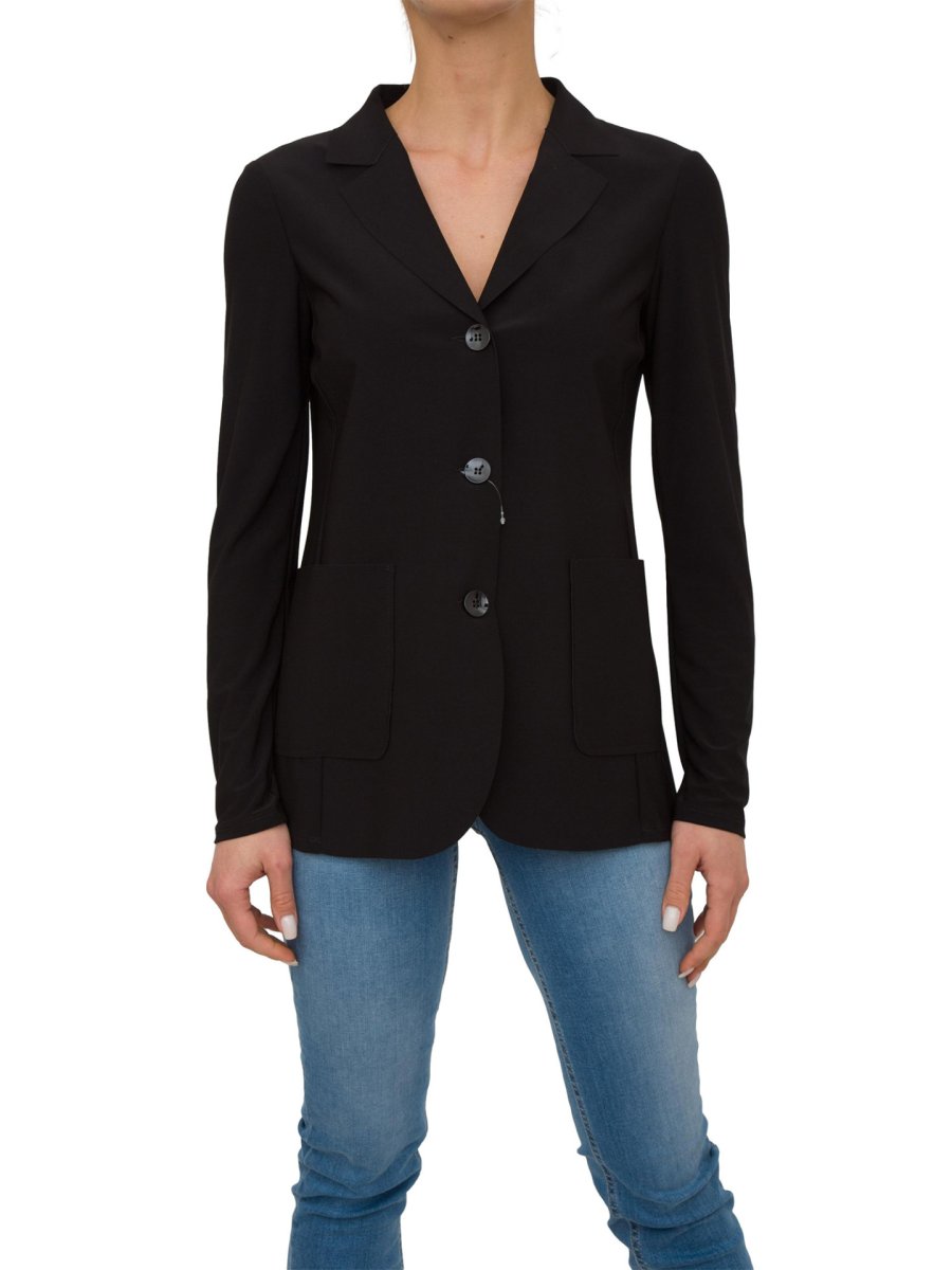 Giacca Monopetto Max Mara realizzato in morbido jersey bistretch, collo a rever e tasche applicate sul davanti, rifiniti con termosaldatura. Modello sfoderato con spacco centrale sul retro. Chiusura con bottoni.
