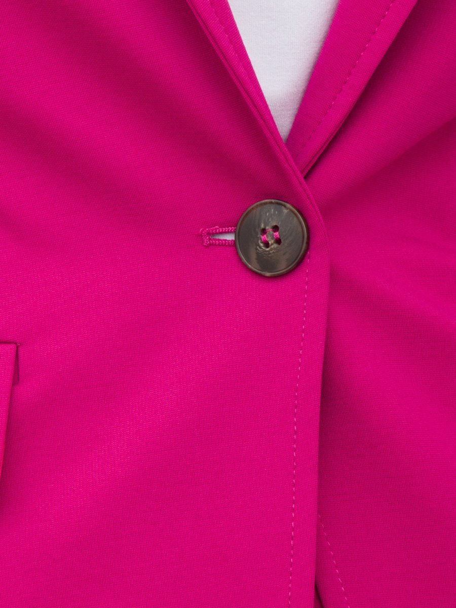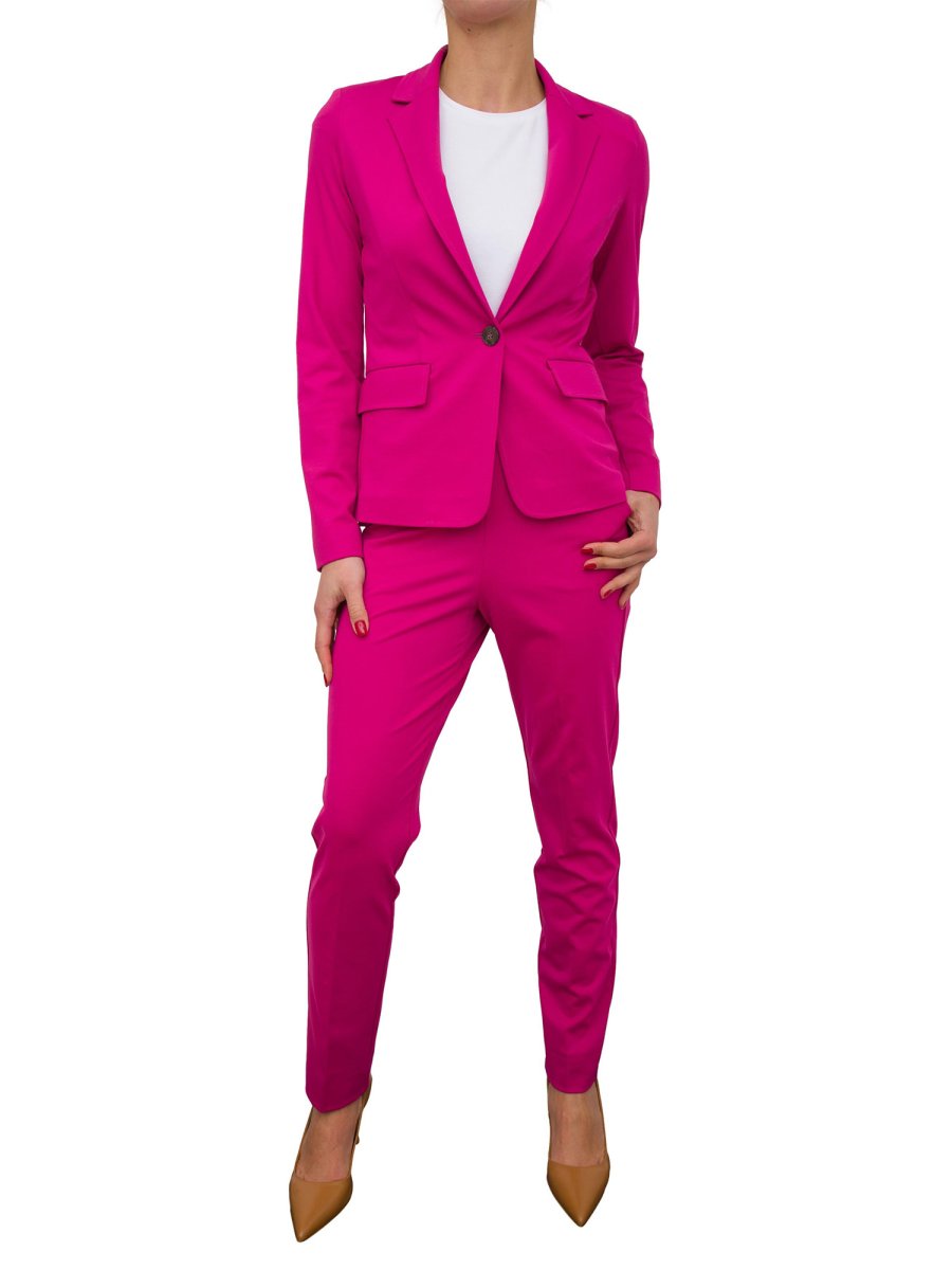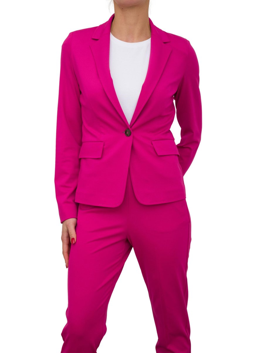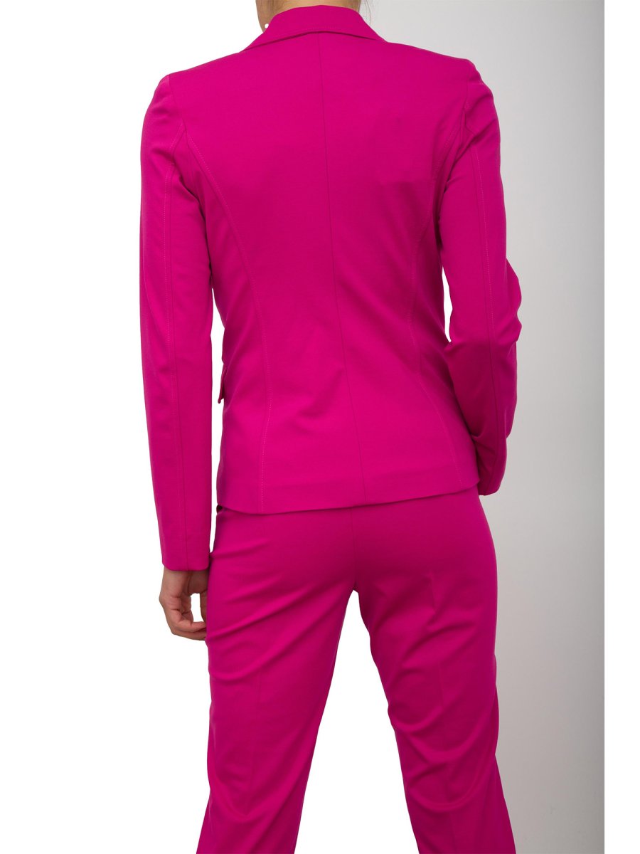 Giacca monopetto in jersey punto Milano con impunture, linea dritta. Collo a rever, maniche lunghe. Chiusura con bottone a vista, tasche con patta. Semifoderato.