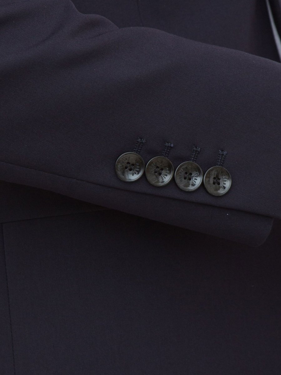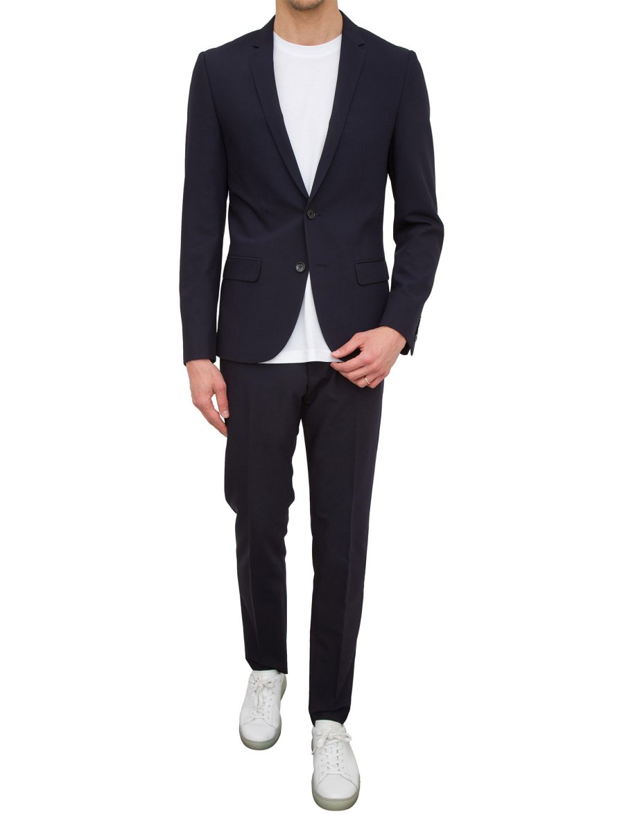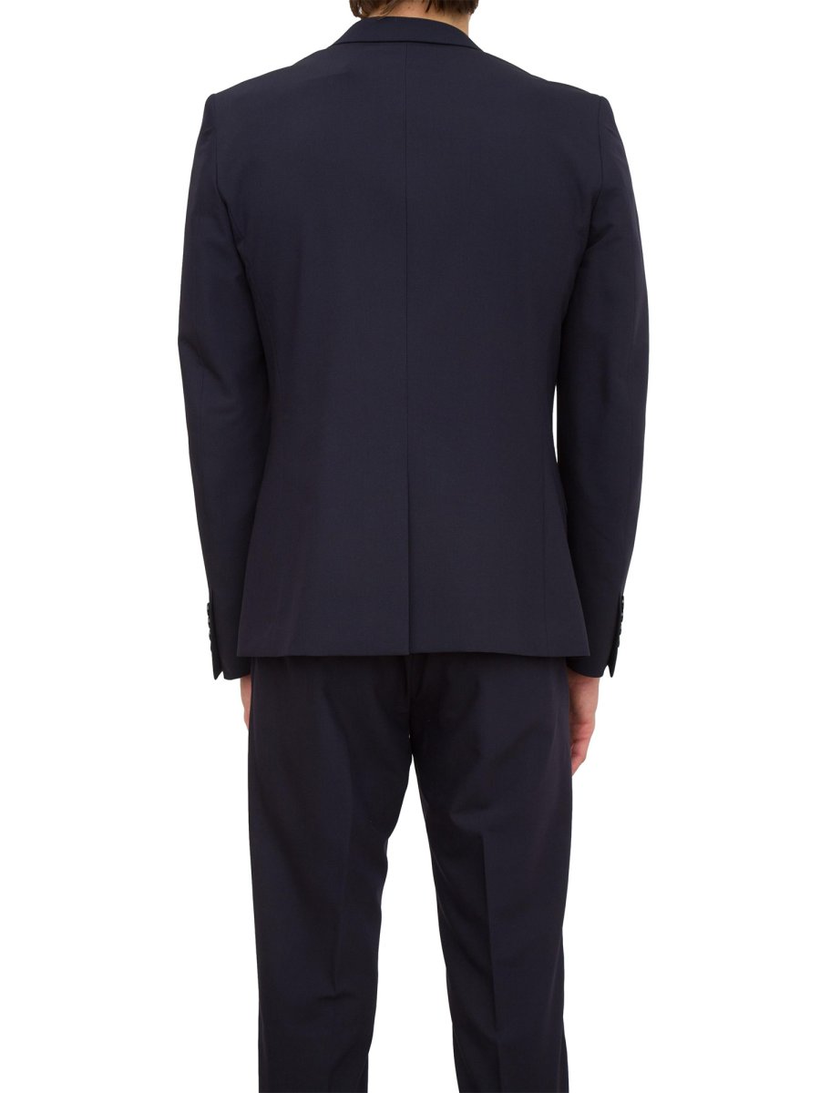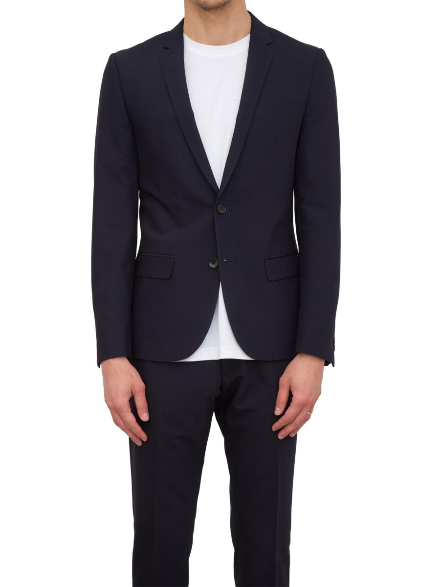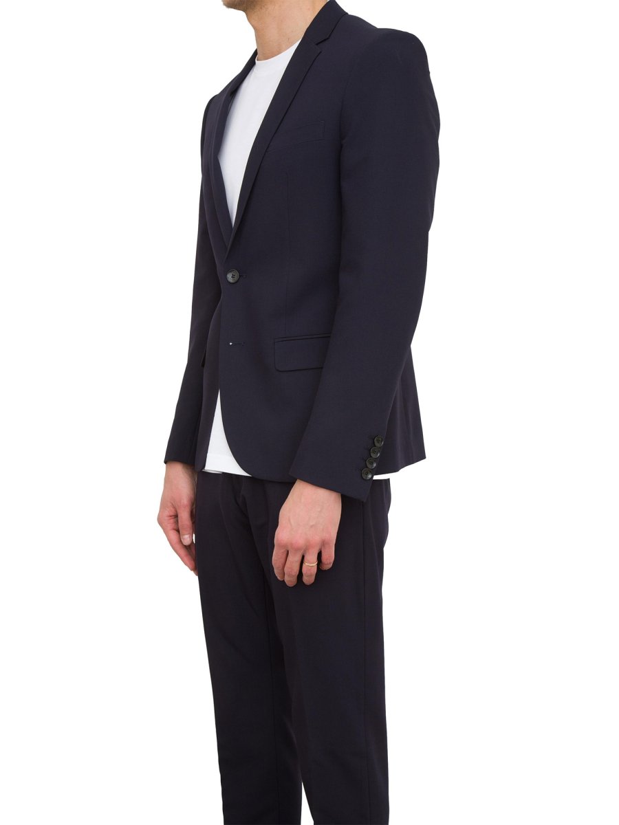 Giacca monopetto dal taglio classico in tinta unita con vestibilità aderente. È realizzata con un rever stretto e chiusura a due bottoni. Due tasche con patta sul davanti, un taschino lato cuore e uno spacco sul retro completano il design di questa giacca.