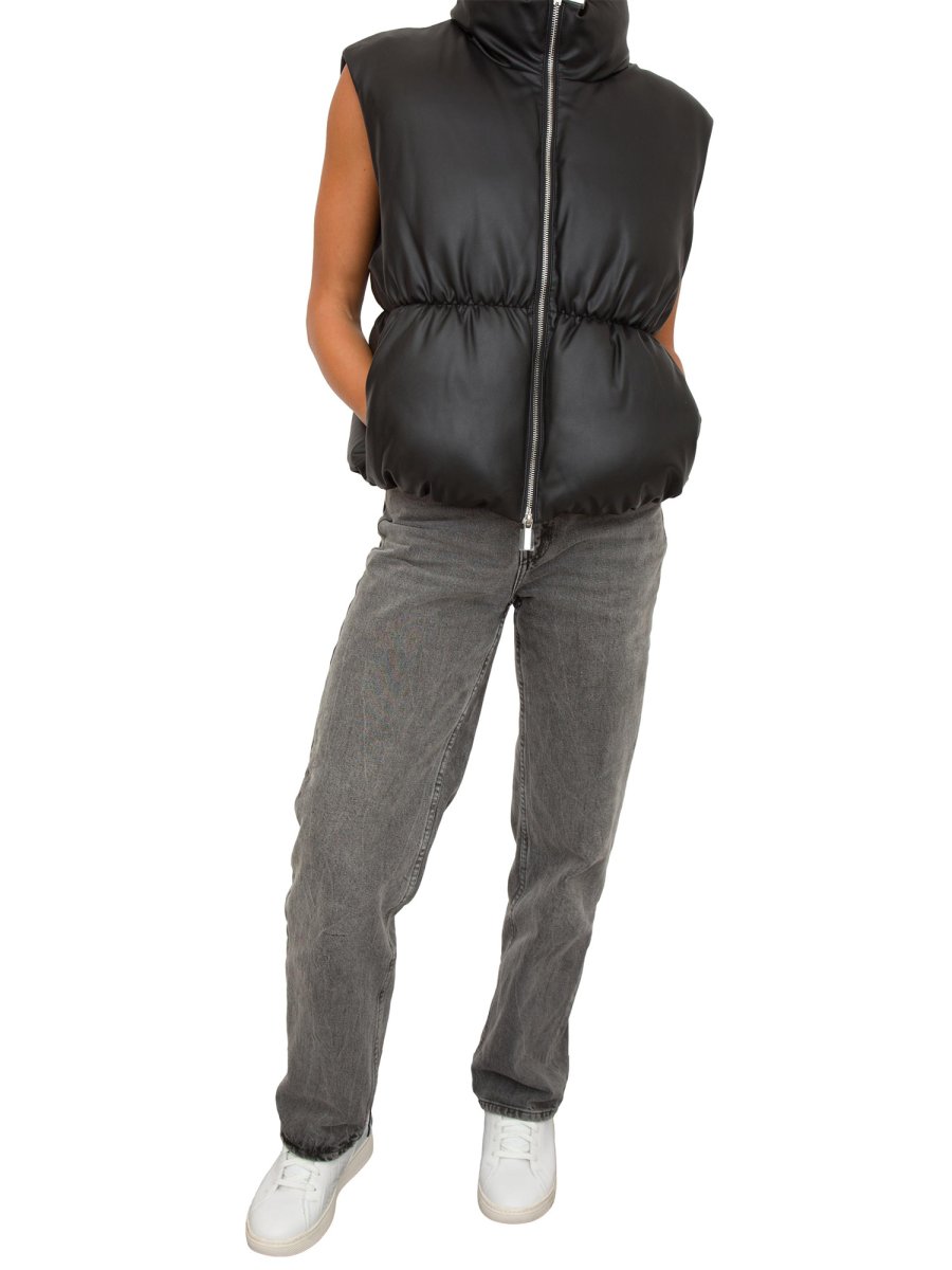 Жіночий жилет Armani Exchange з блискучої тканини з максі стьобанням, високим коміром на блискавці та бічними кишенями.
