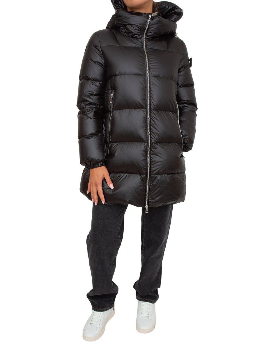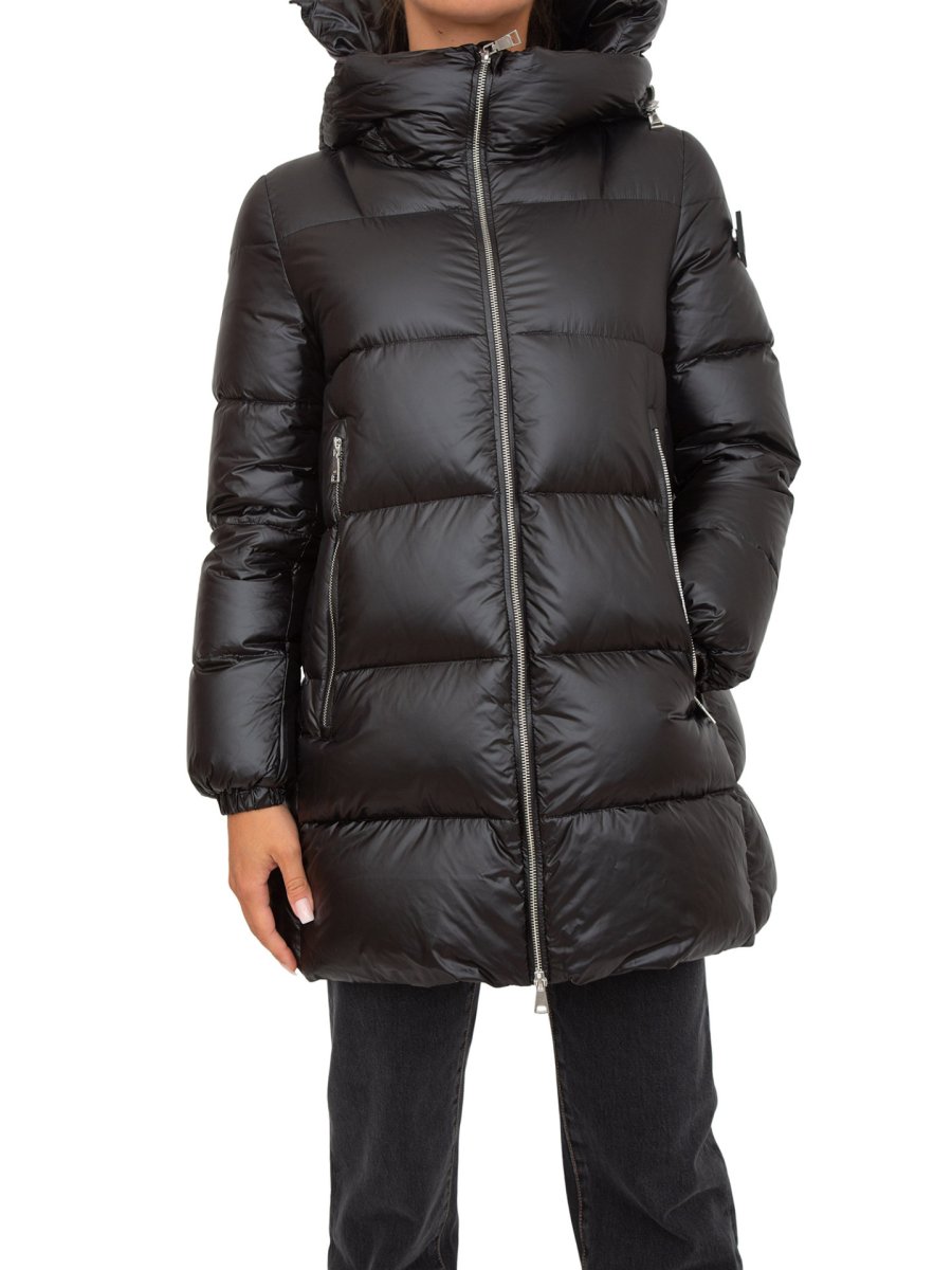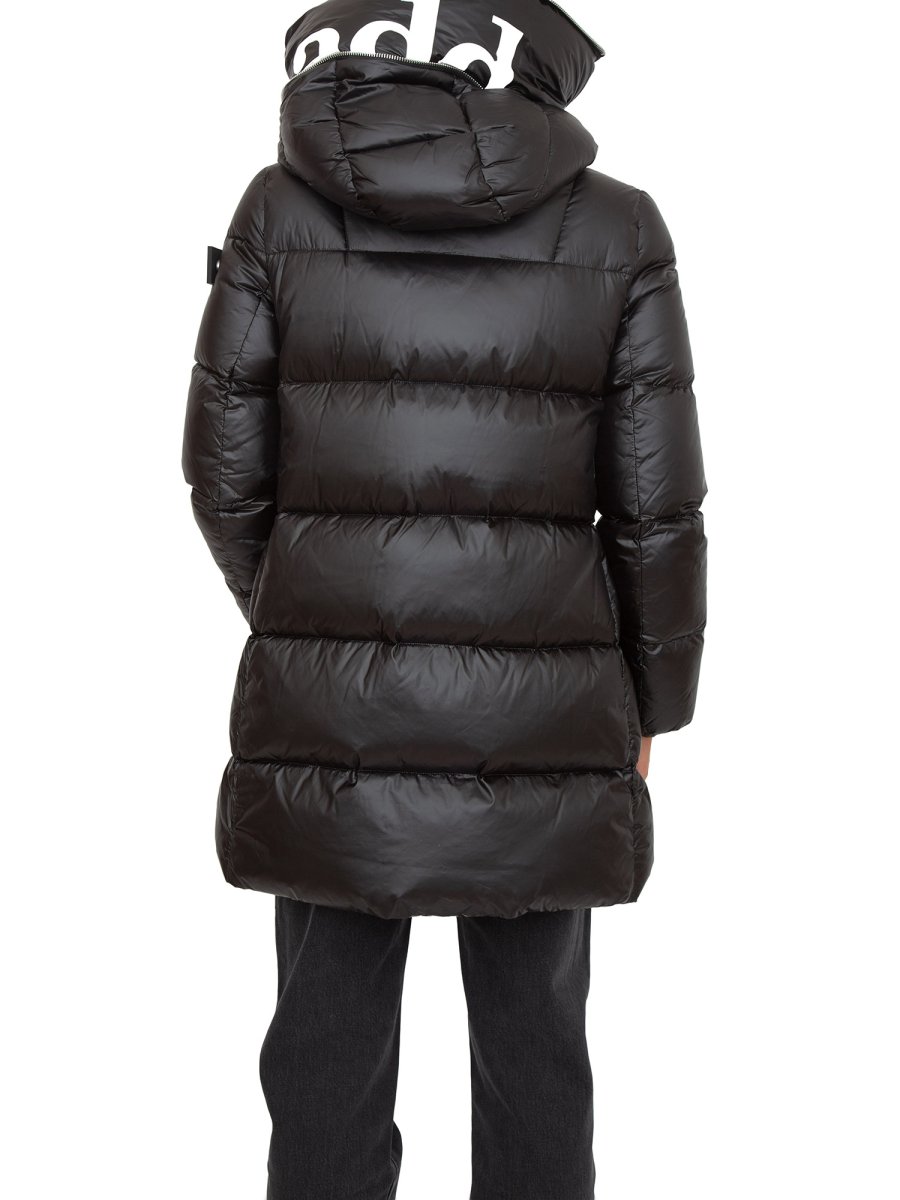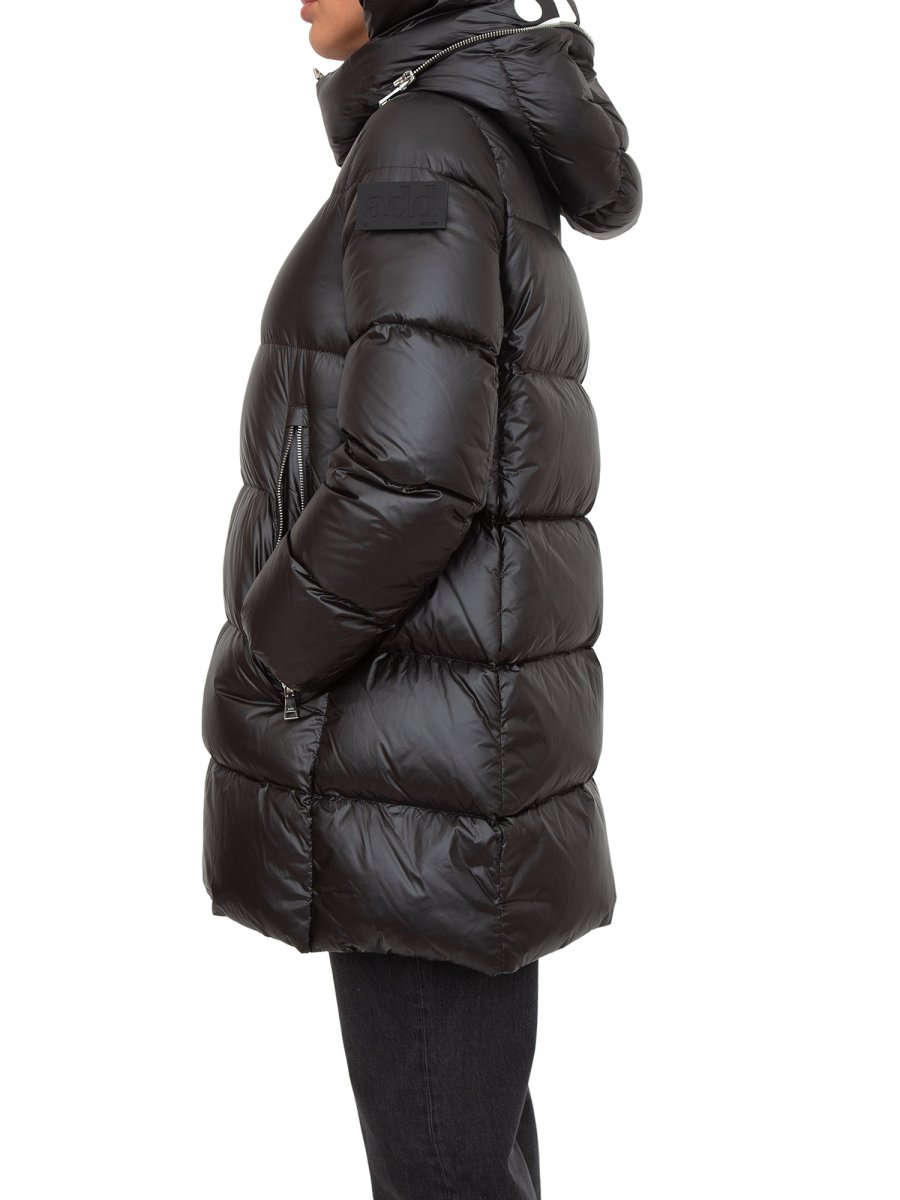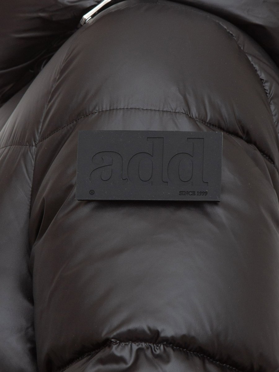 Piumino lungo ADD con cappuccio, chiusura con zip a doppio cursore e due tasche laterali con zip.