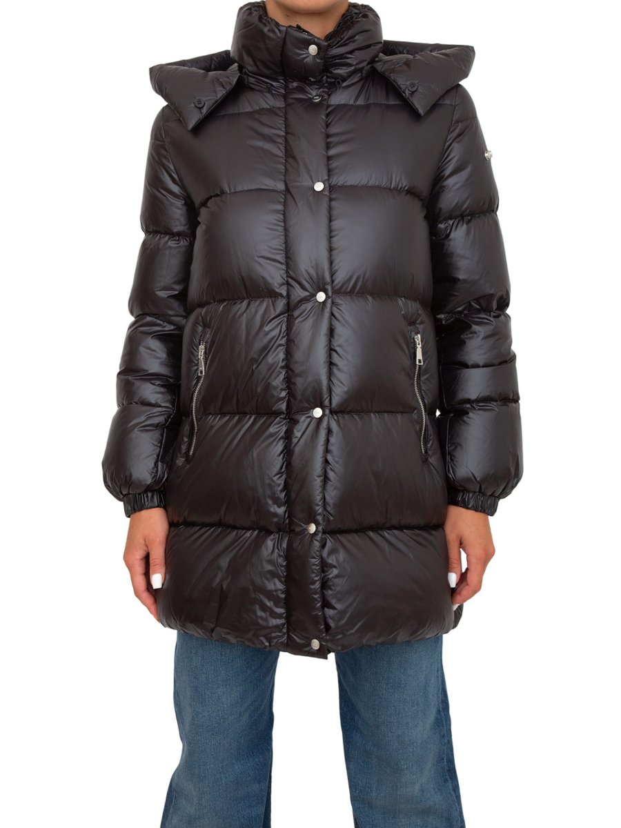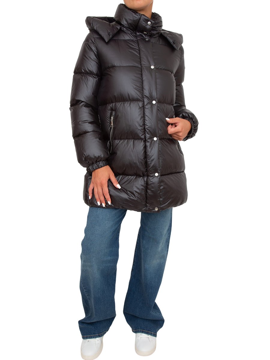 Giaccone donna Add con cappuccio, chiusura con zip a doppio cursore e bottoni logati.