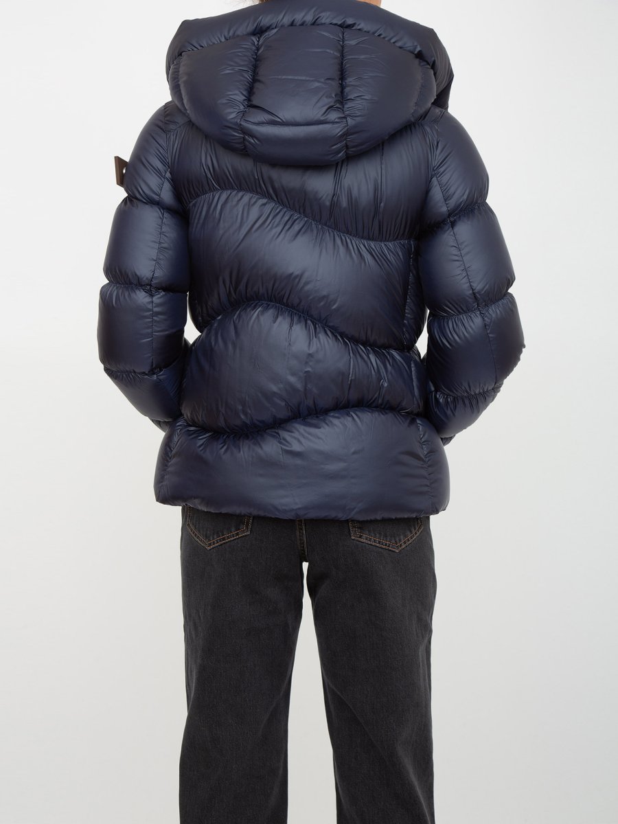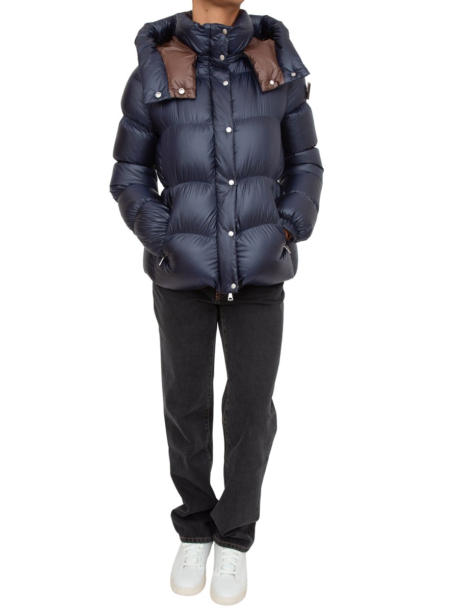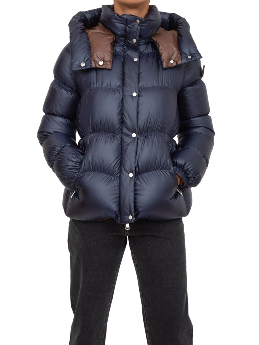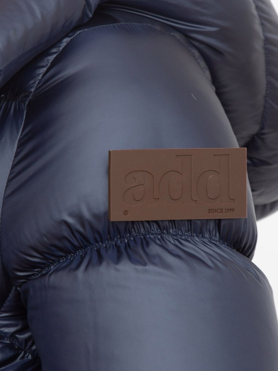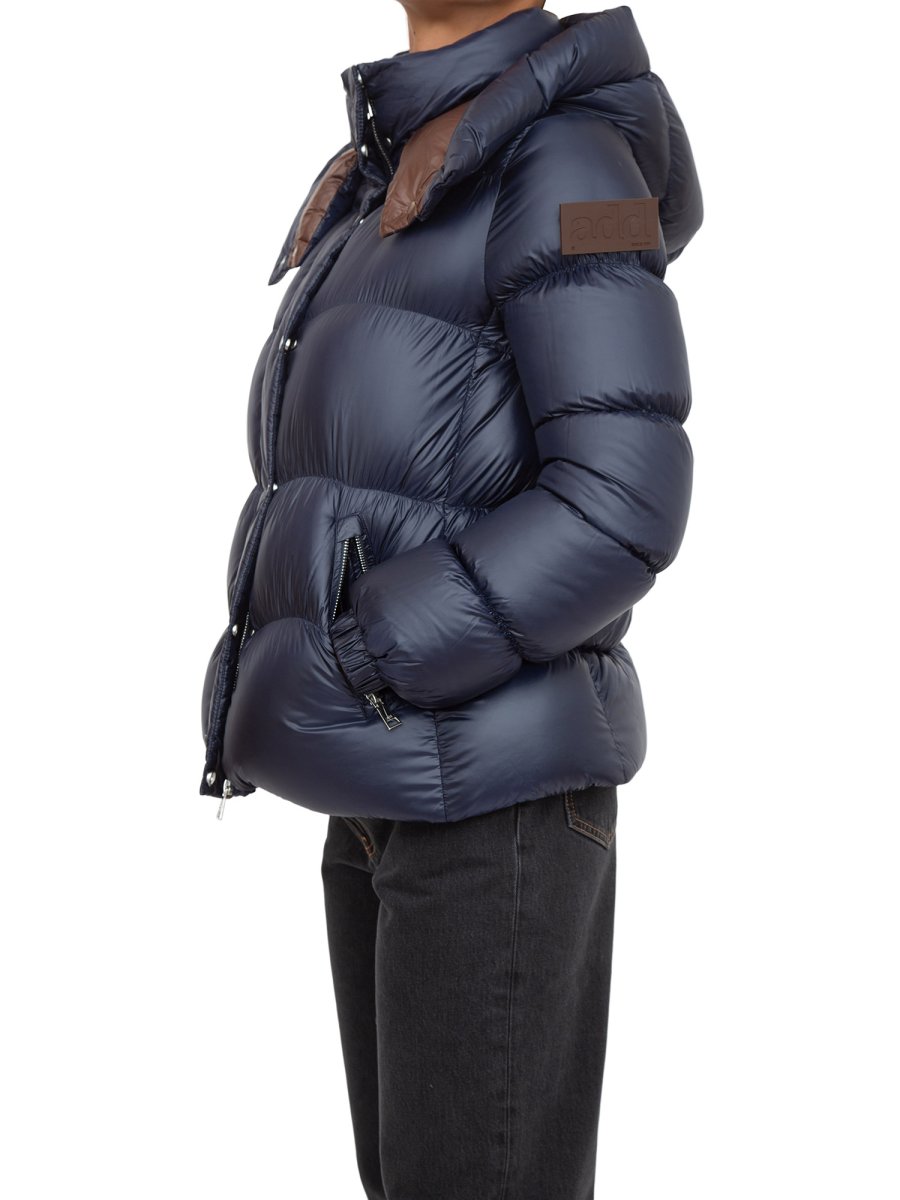 Piumino con cappuccio ADD , con chiusura frontale con zip in metallo a doppio cursore e patta copri zip con bottoni automatici. Due tasche laterali con zip in metallo.