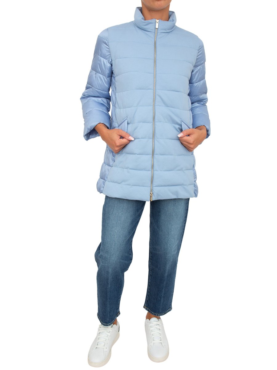 Giubbino Marella realizzato in misto viscosa con tasche laterali, chiusura con zip a doppio cursore e maniche a 3/4.