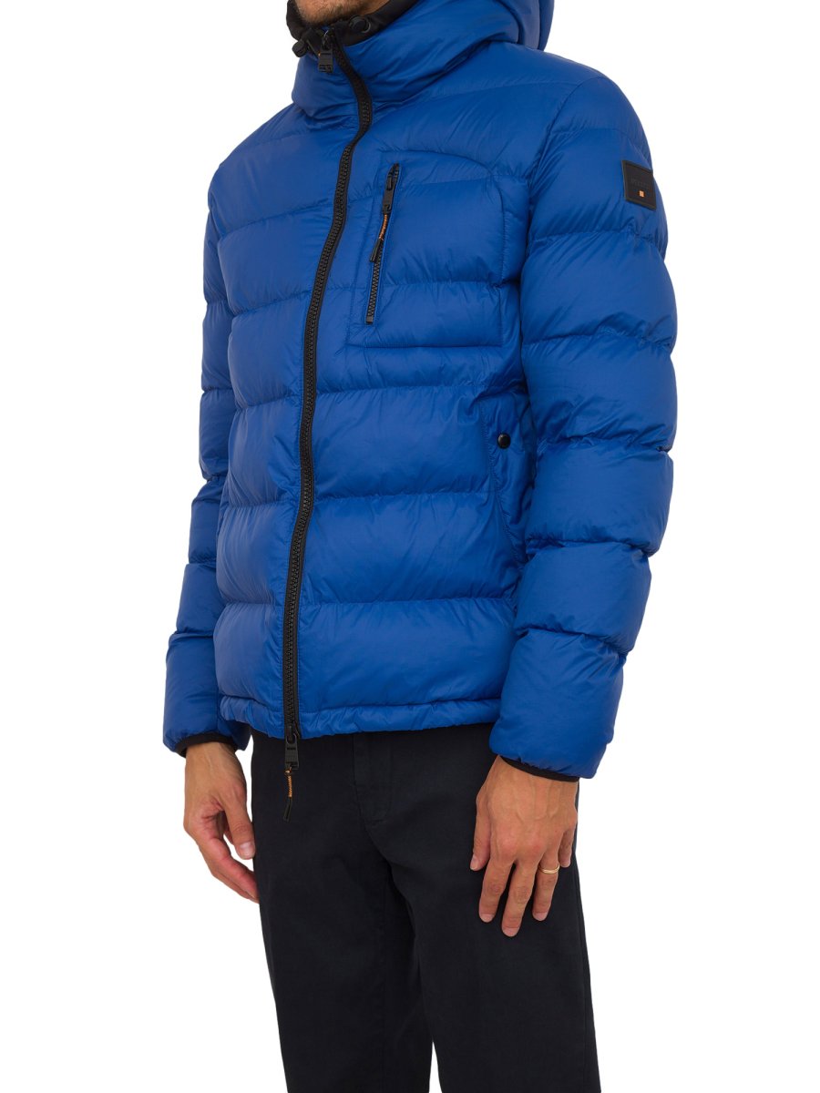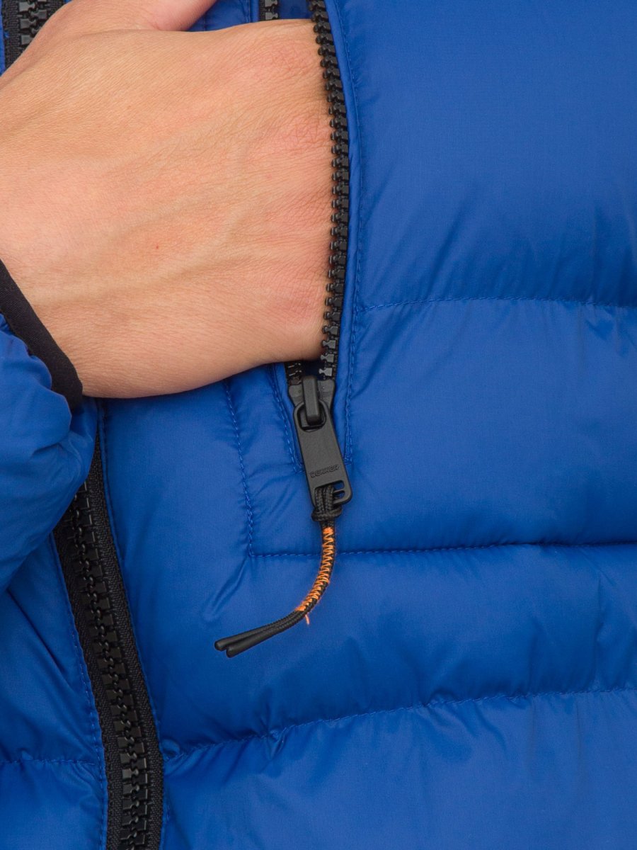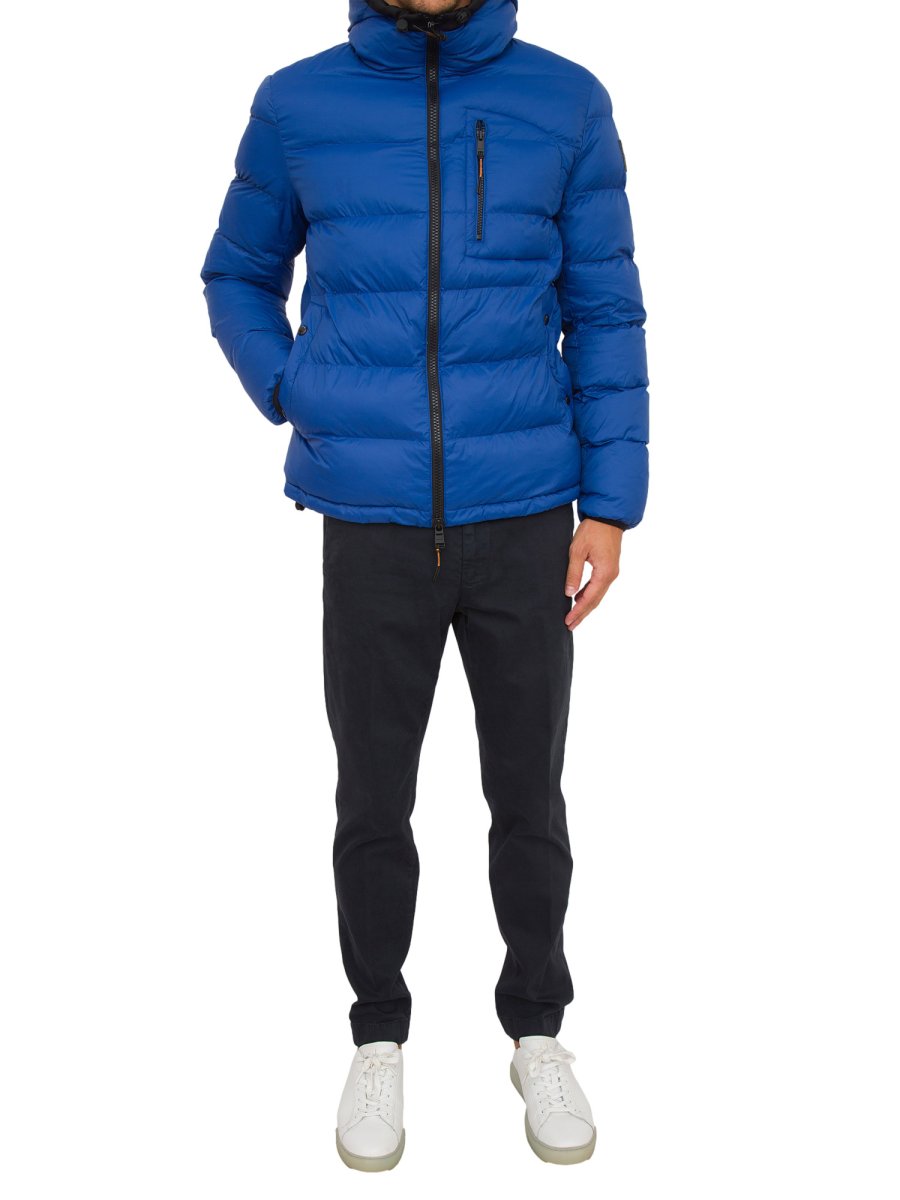 Giubbino uomo Dekker in nylon 20 denari, dal peso di soli 40 grammi. L’imbottitura fake down a iniezione diretta assicura un alto isolamento termico pur mantenendo la sua leggerezza. Full zip centrale, cappuccio fisso e tasche laterali con bottoni automatici. Tasca al petto zippata con dettaglio zig zag arancio. Collo profilato con nastro e polsi elasticati in contrasto nero.