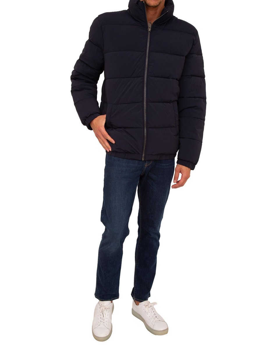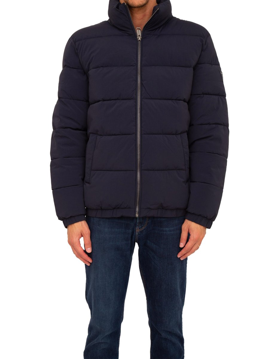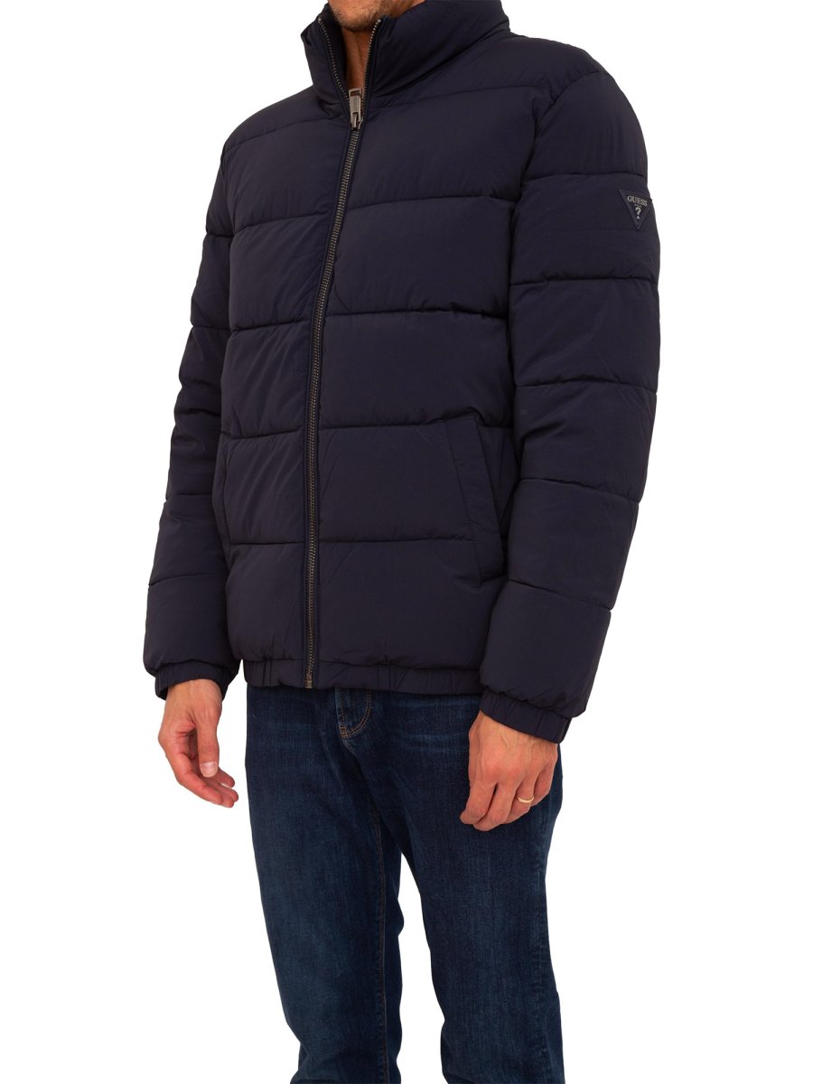 Piumino uomo Guess Jeans realizzato in tessuto sintetico, collo alto, manica lunga, vestibilità regular e chiusura con cerniera.