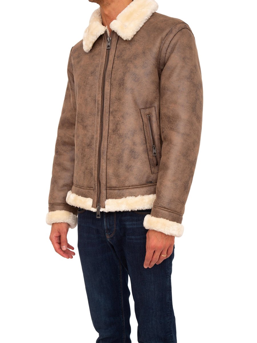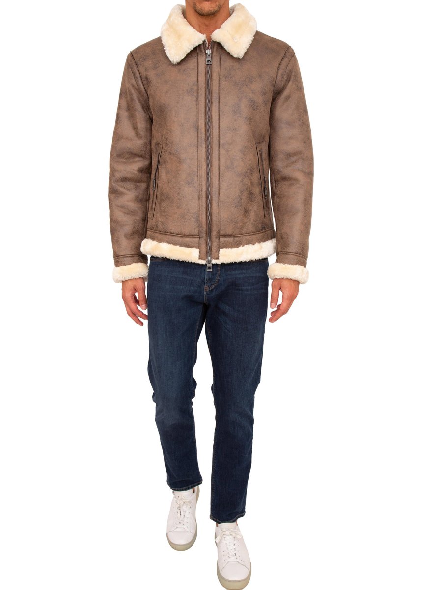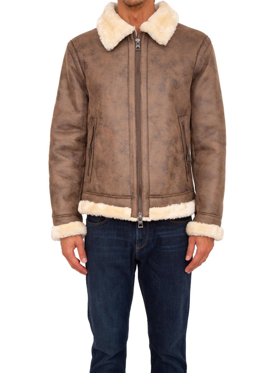 Giubbino da uomo Guess Jeans in simil shearling, tessuto sintetico, colletto classico, manica lunga, vestibilità regular e chiusura con cerniera.