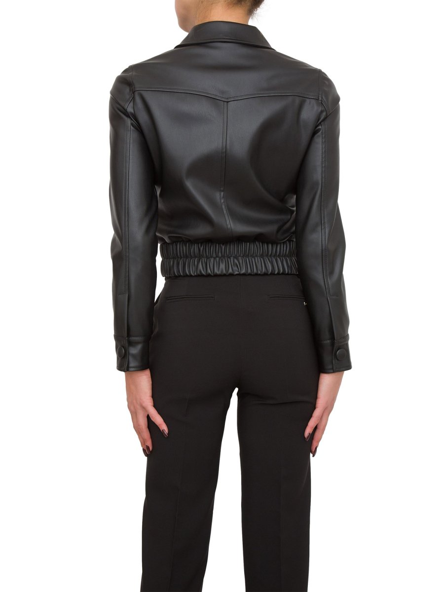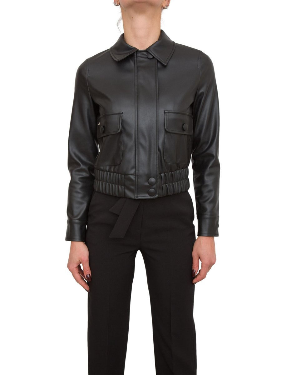 Giubbino Kocca realizzato in ecopelle con colletto, tasche frontali e chiusura con bottoni.