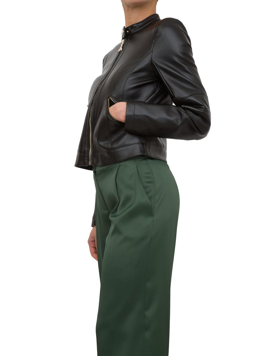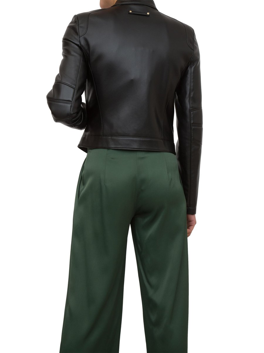 Questa giacca biker in tessuto spalmato presenta linee maschili e dettagli metallici per creare total look audaci o giocare con abbinamenti inediti. La cerniera è rifinita con dettaglio Fly.