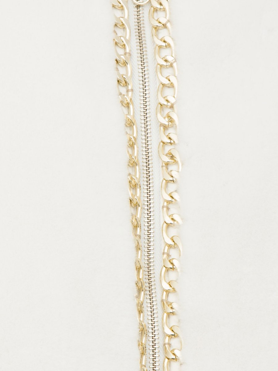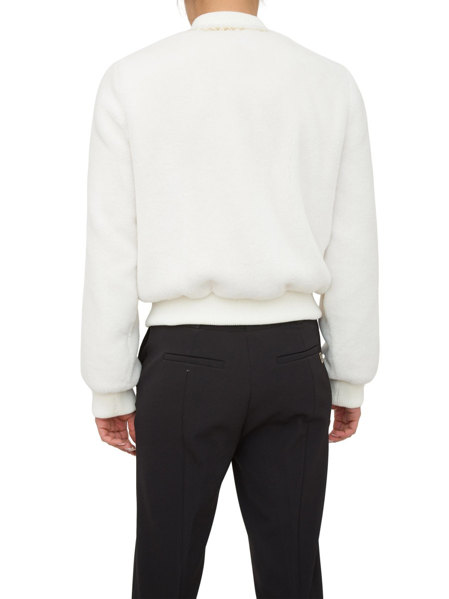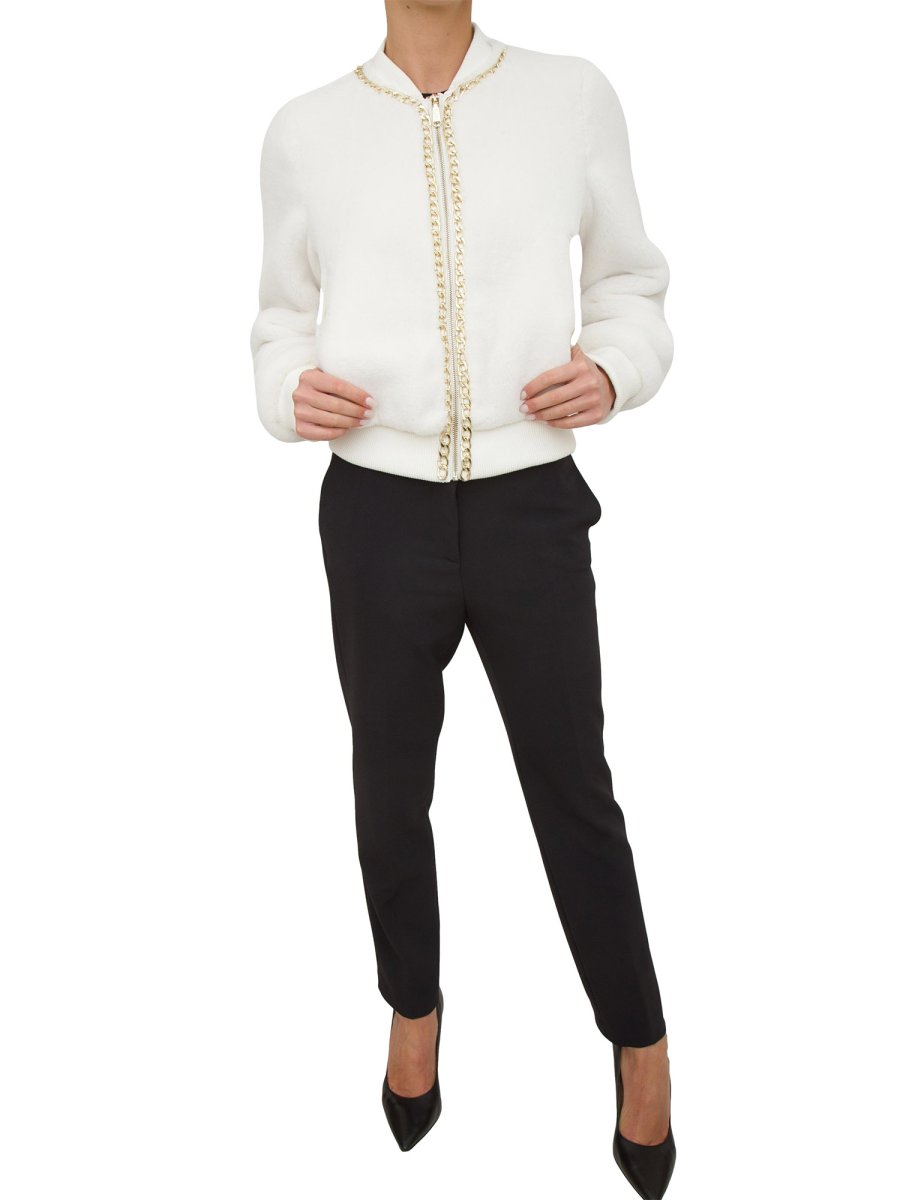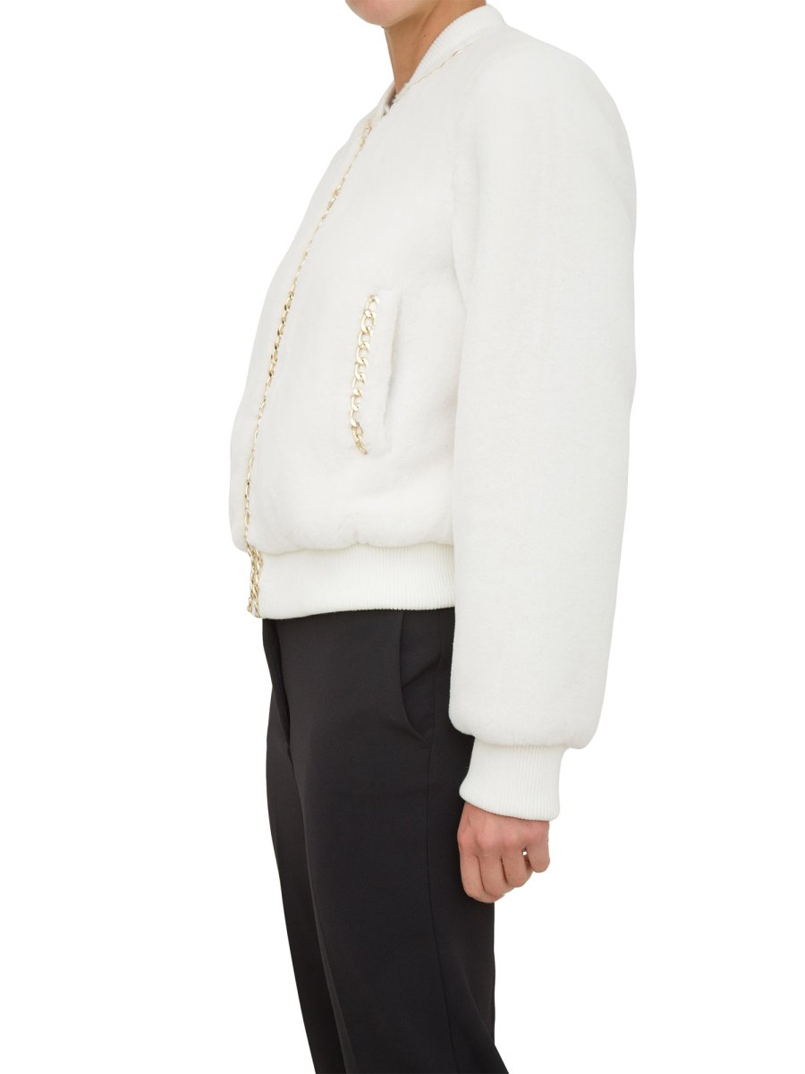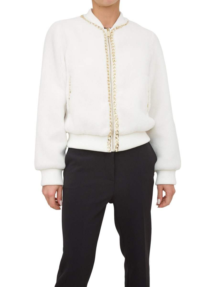 Giubbino BLUGIRL in eco pelliccia. Bordi rifiniti con catenella color oro. Due tasche sui lati. Maniche lunghe con polsi e coste. Chiusura con zip.