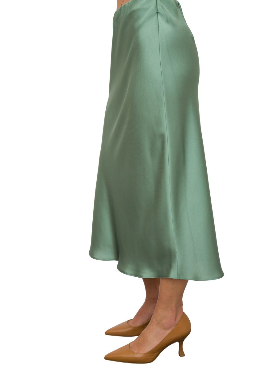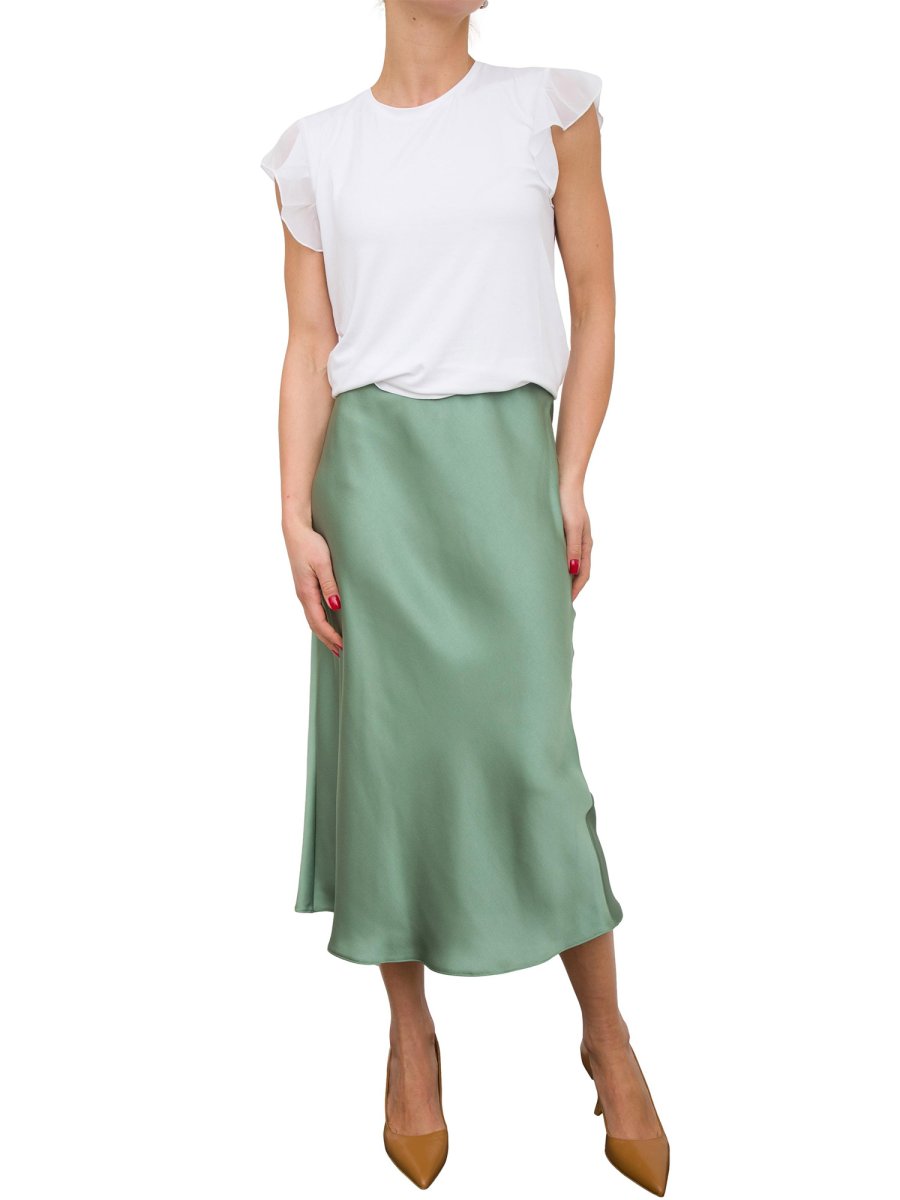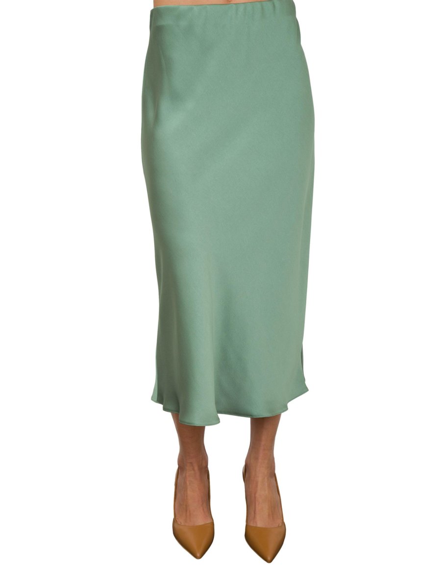 Gonna longette realizzata in raso elasticizzato, caratterizzato da un elegante modello a sirena.