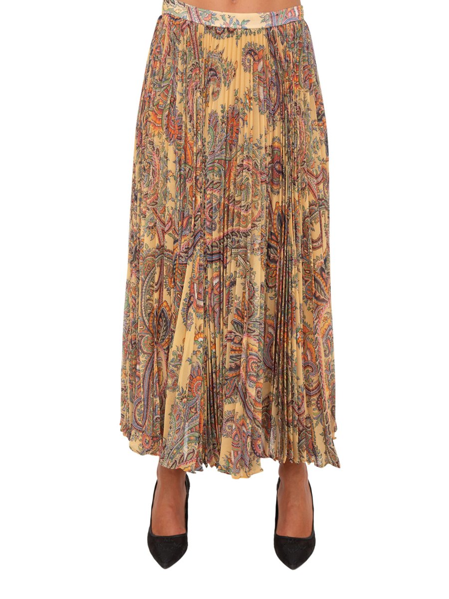 Gonna Etro midi plissé in georgette, decorata da motivi Paisley all over. Vestibilità regular e chiusura sul retro con zip. Made in Italy.