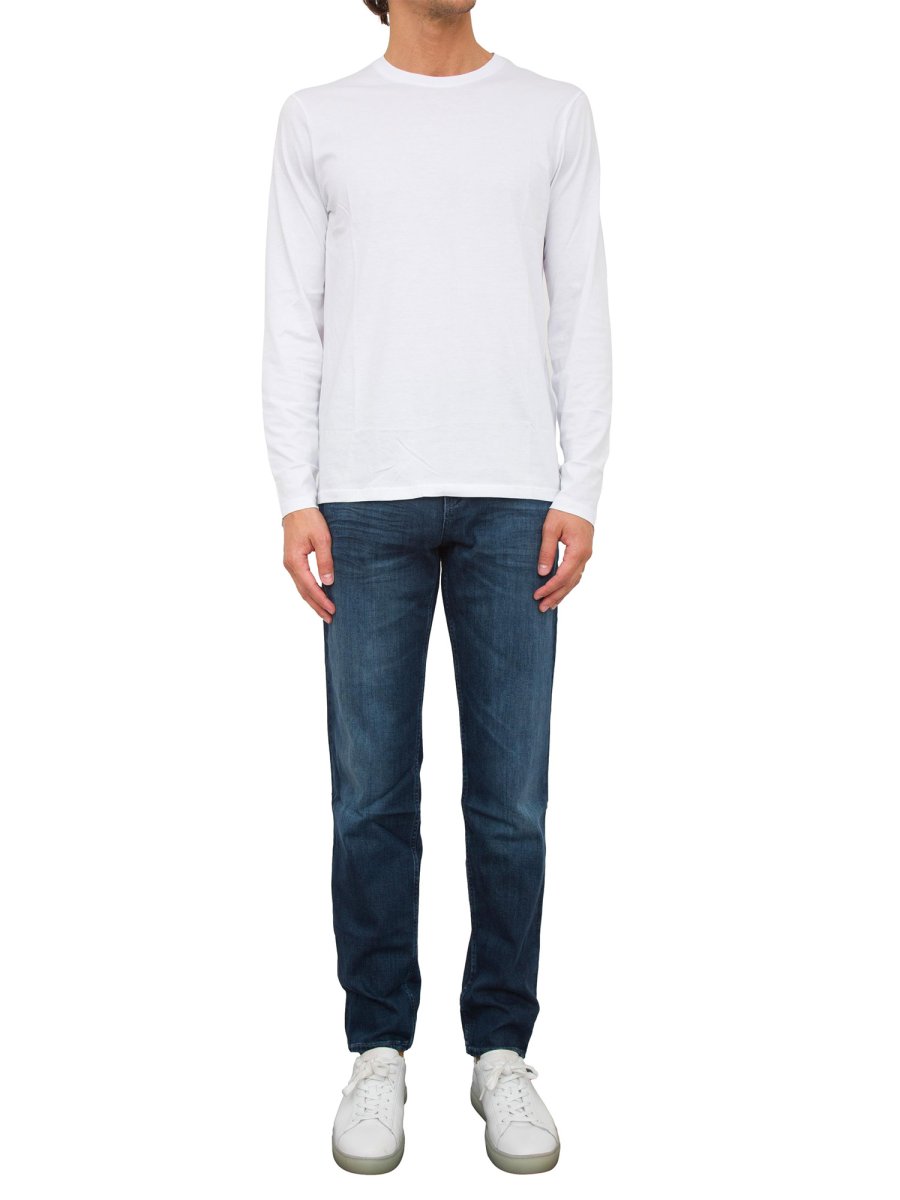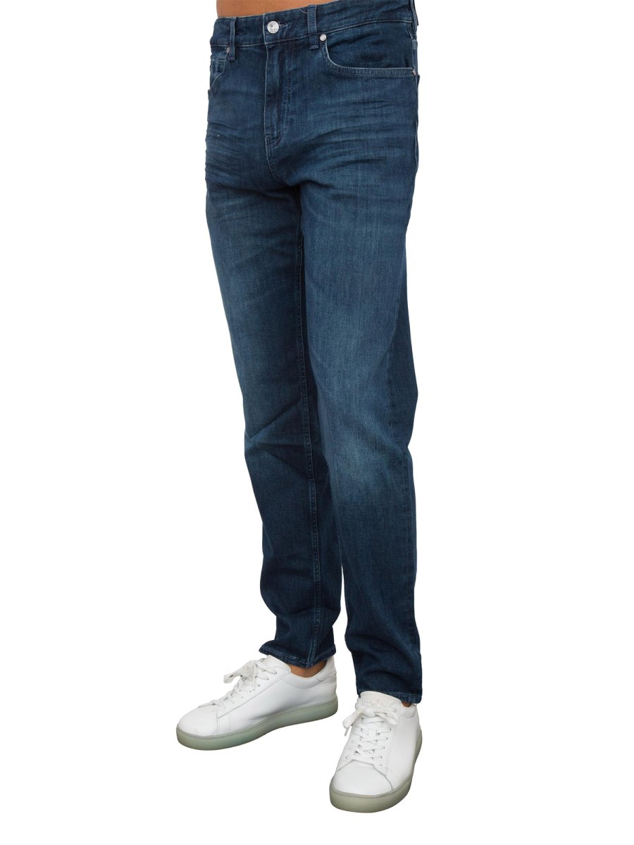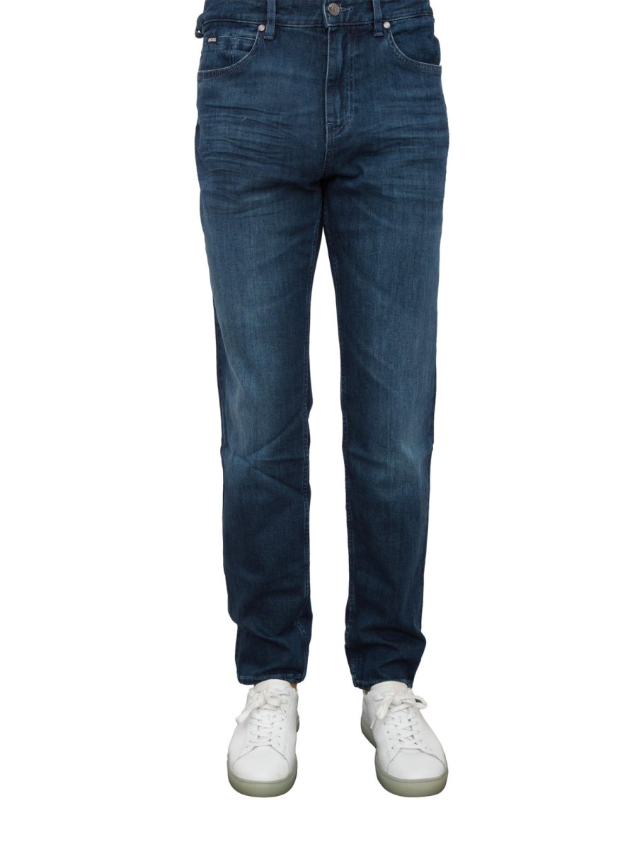 Суперм'які джинси BOSS із зручного еластичного деніму. Вони синього відтінку мають прямий крій, який звужується вздовж штанини.