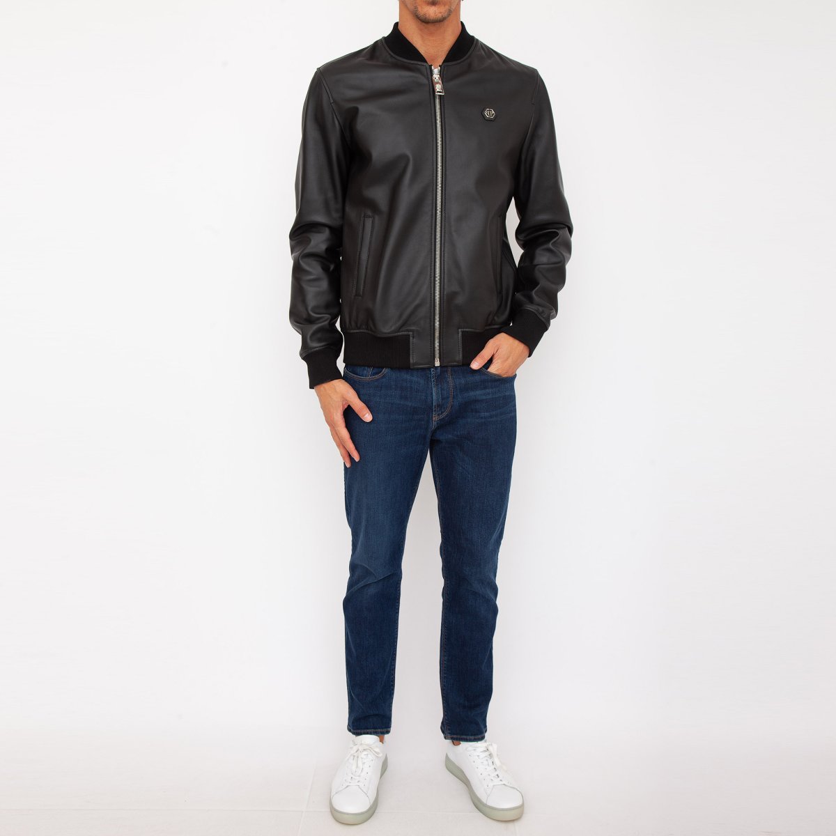 Чоловіча куртка PHILIPP PLEIN Leather Bomber Billy Jacket NERO