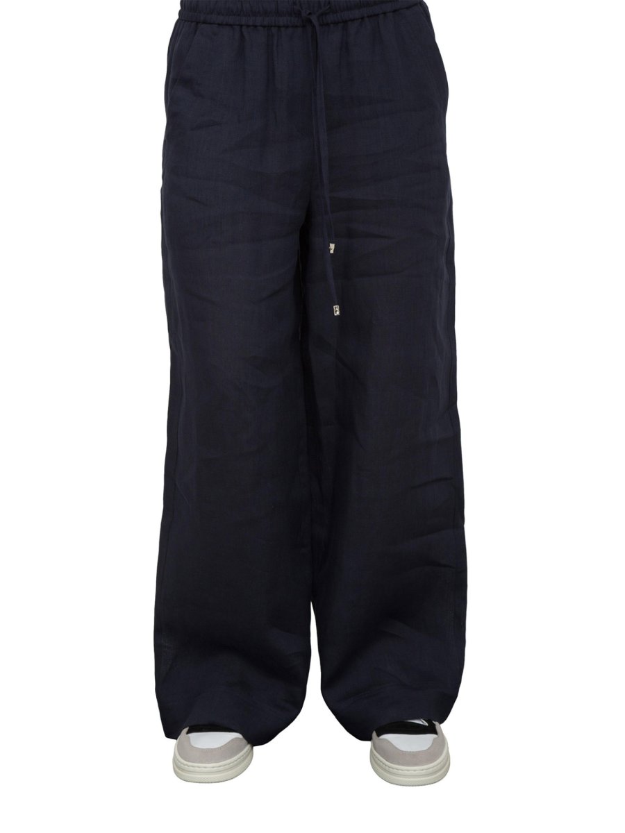 Жіночі штани Marella із 100% льону прямого крою, із зав'язкою на талії, французькими кишенями з боків та прорізними кишенями ззаду. Ідеально підходить для літніх днів.